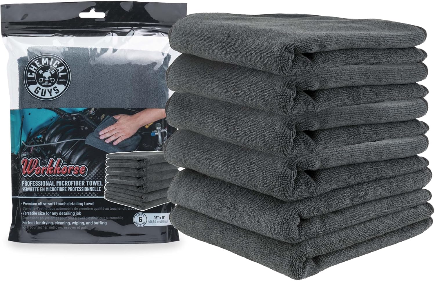 Chemical Guys MIC35306 Workhorse Professional Grade Microfiber Towel, Black (16 in. x 16 in.) (Pack of 6)