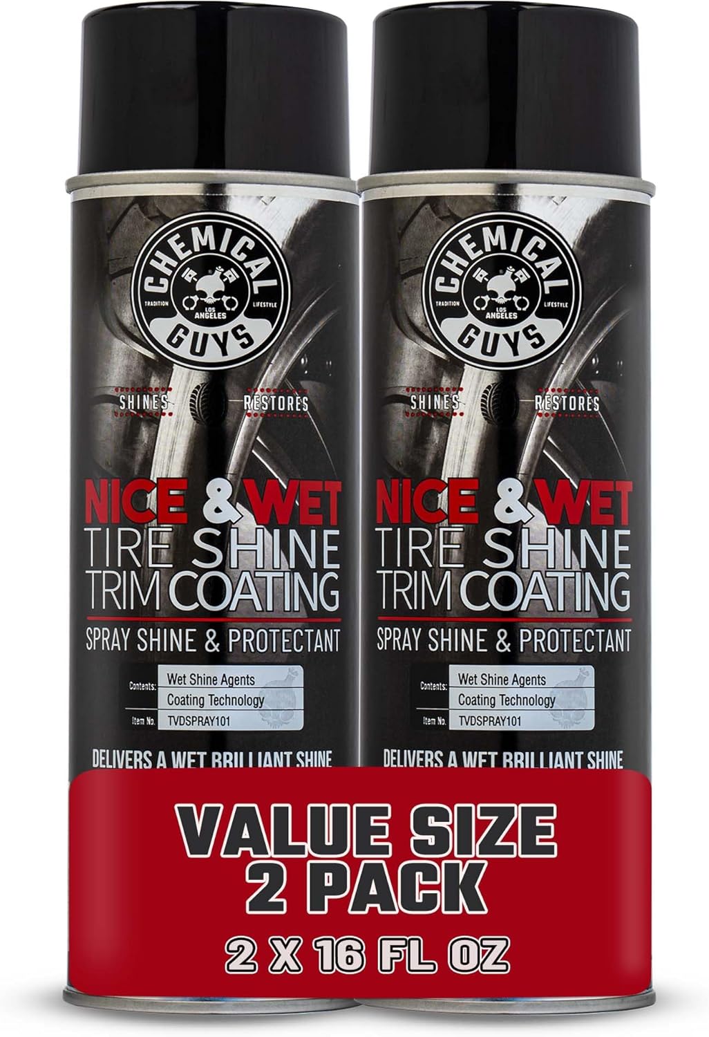 Chemical Guys Nice and Wet Tire Shine (Aerosol) (2 Pack) – High Gloss Tire Dressing Spray for Black Shine & Water-Based Protection