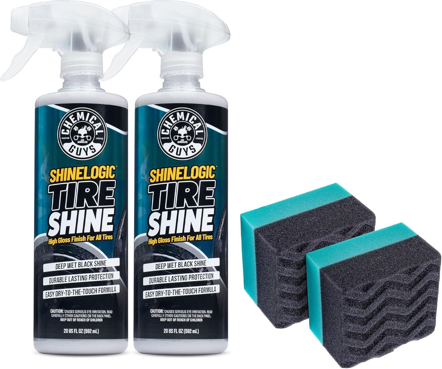 Chemical Guys ShineLogic Tire Shine Safe for Cars, Trucks, Motorcycles, RVs & More, Includes WonderWave Applicator Kit, 20 fl oz, 2 Pack