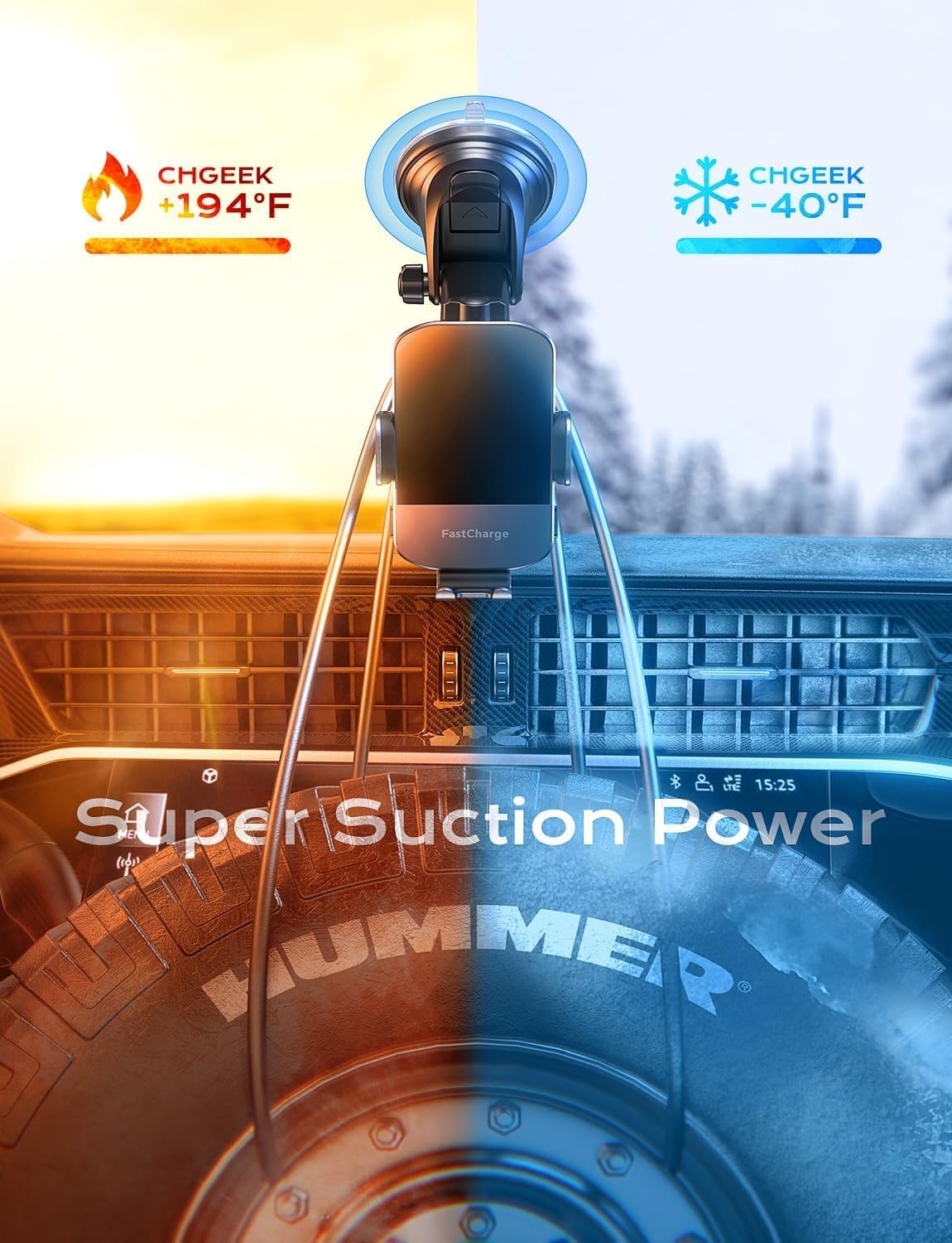 【Case Friendly & Flexible Angle Adjustment】Enjoy hassle-free charging through phone cases up to 6mm thick with our CHGeek phone holder for car. Please note that metal cases, magnets, credit cards, grips, and stands may interfere with charging. For optimal viewing and safe driving, the 360° rotating sphere and retractable & foldable bracket allow you to adjust the angle to your preference.