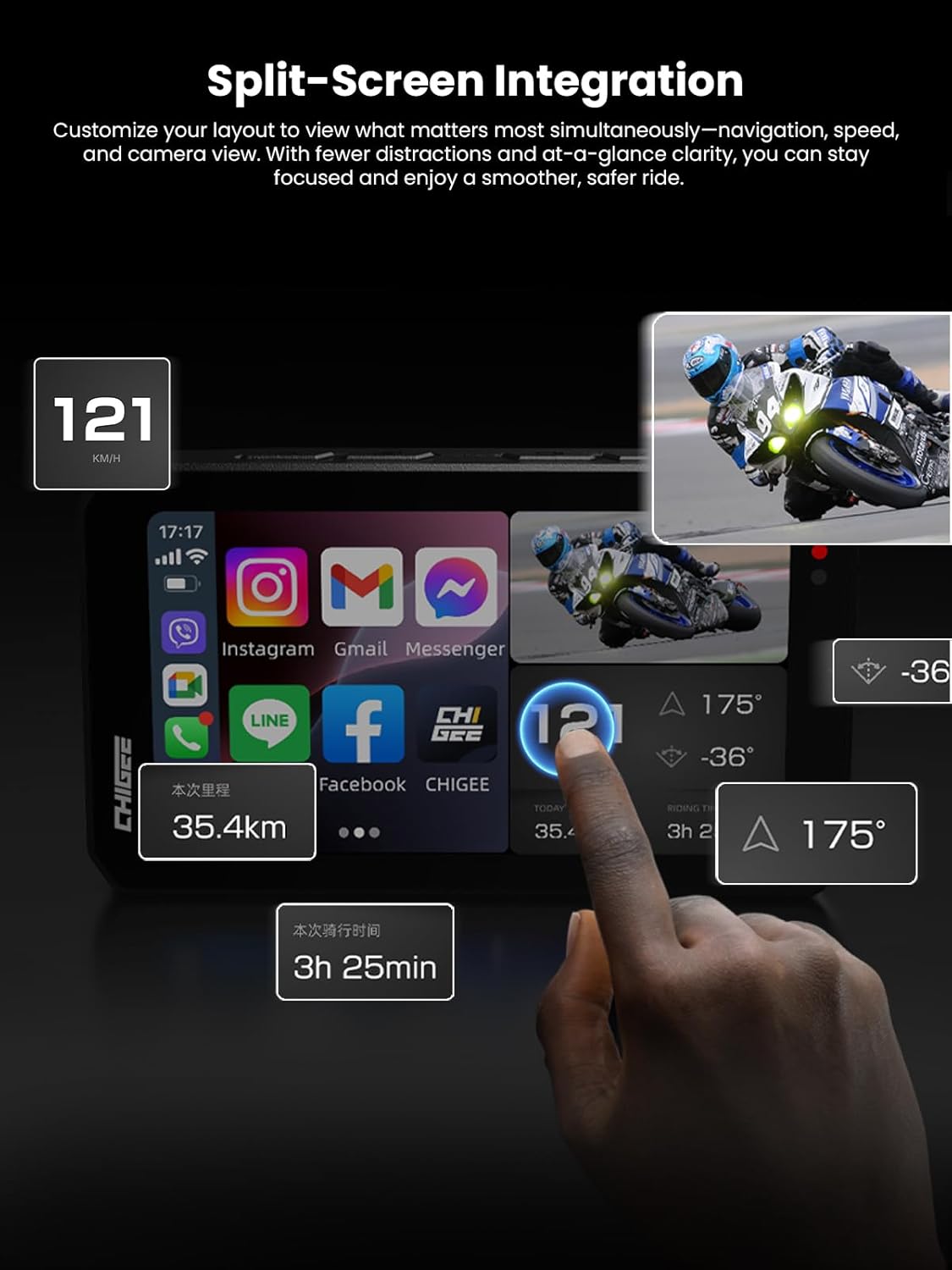 I installed the CHIGEE AIO-5 EVO on my motorcycle and have been impressed with how much functionality it packs into a single system. The 5 inch waterproof display is easy to read in all lighting conditions and feels solid and responsive on the bike.Setup was reasonably straightforward considering how many features are built in. Wireless CarPlay and Android Auto work well once paired, and being able to mirror navigation and media without cords is a real convenience on longer rides.The dual 1080P dash cams provide good clarity, especially for front footage, and the rear camera gives useful context while riding or parked. Parking mode and blind spot detection added an extra layer of confidence that I didn’t expect from a unit in this price range.The blind spot detection works consistently, alerting me to vehicles I might not otherwise see, and the overall system feels well integrated rather than a collection of separate accessories.Overall, this is a very capable smart riding system that brings multiple functions together in a well-rounded package. It’s not entry-level basic, but it doesn’t feel overly complex either. For riders who want convenience, connected tech, and added safety features all in one, this delivers solid performance and real value.