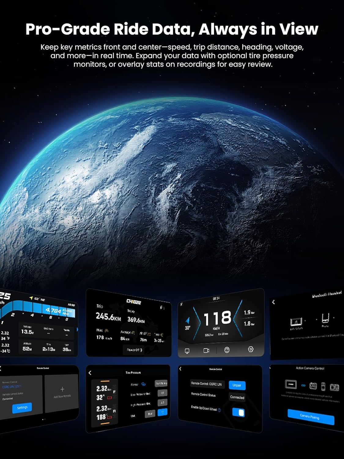 PARKING MODE & APP CONNECTIVITY – Protect your bike even when you are away with the Parking Monitoring feature, which detects and records incidents while parked. Using the dedicated Chigee Go app, you can seamlessly view, download, and share your ride footage via a direct Wi-Fi connection.