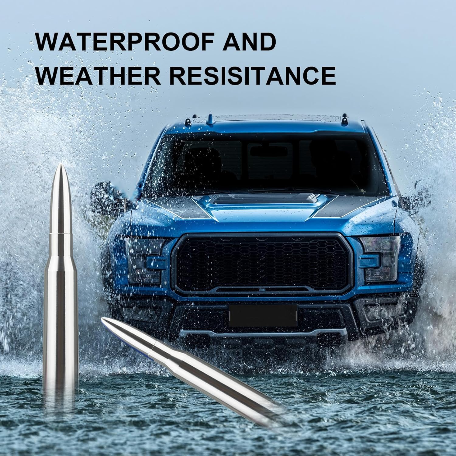 Our bullet antenna for trucks is waterproof, weatherproof, and car wash-safe.