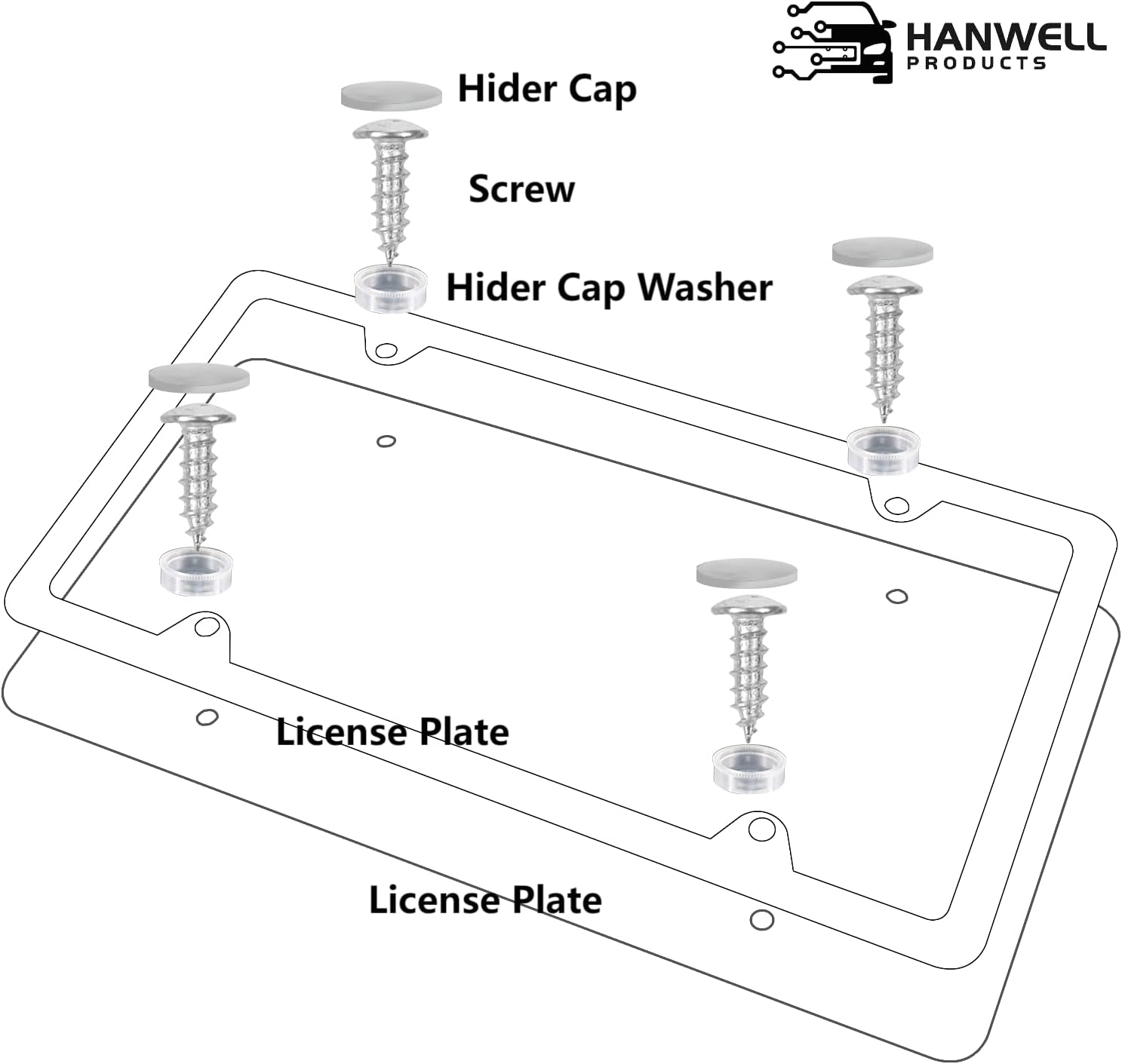 Comes with everything you need to install (screwdriver, screws, washers, screw caps, and installation instruction). You can easily install the license plate frame in one minute.