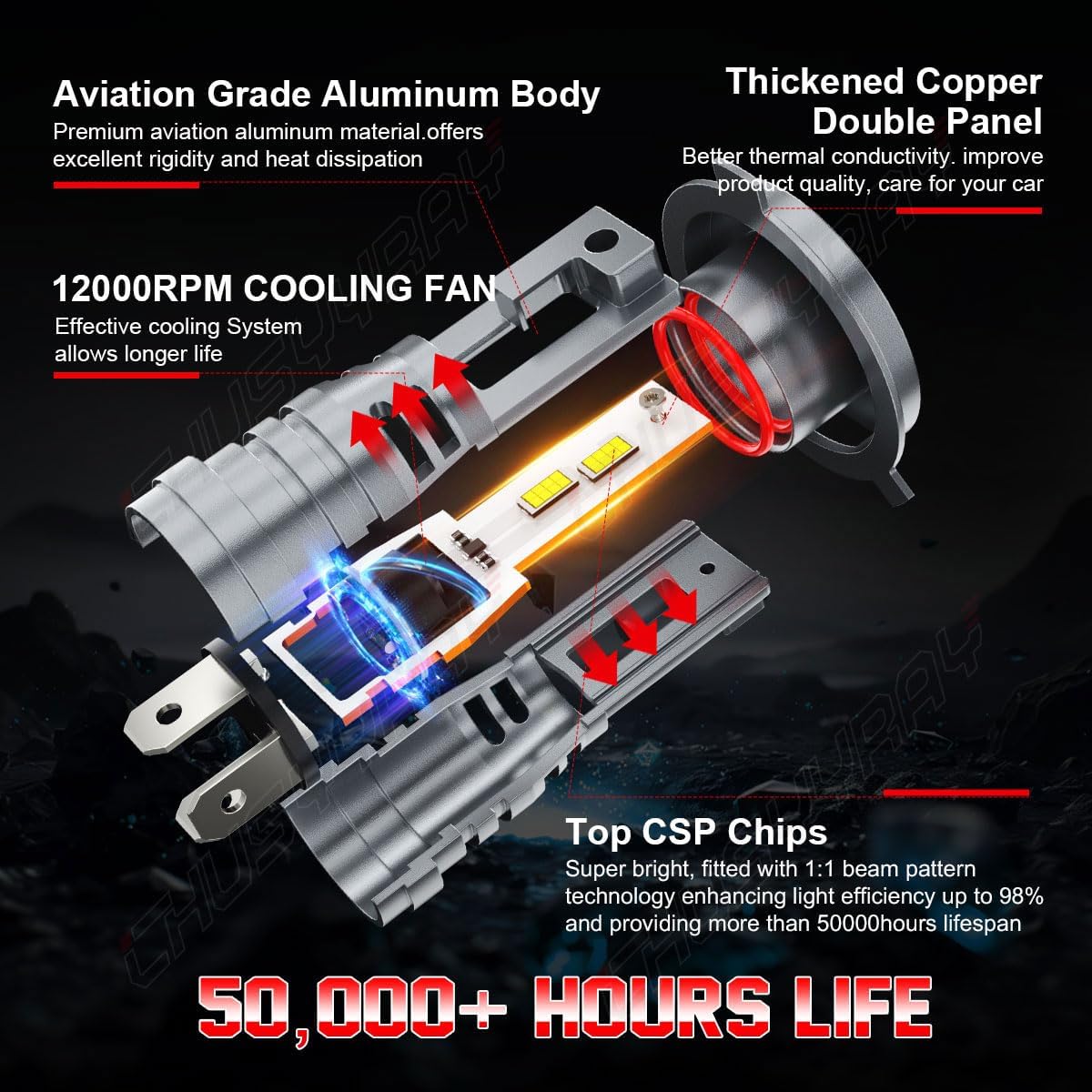 [High Brightness] 6000LM High Beam, 3000LM Low beam for led headlight; Sharp cut-off line with superior light output ensures NOT blind others’ eyes while providing the brightest and widest vision. With newest unique design, high quality and classic apperance, perfect light pattern, safe on road !