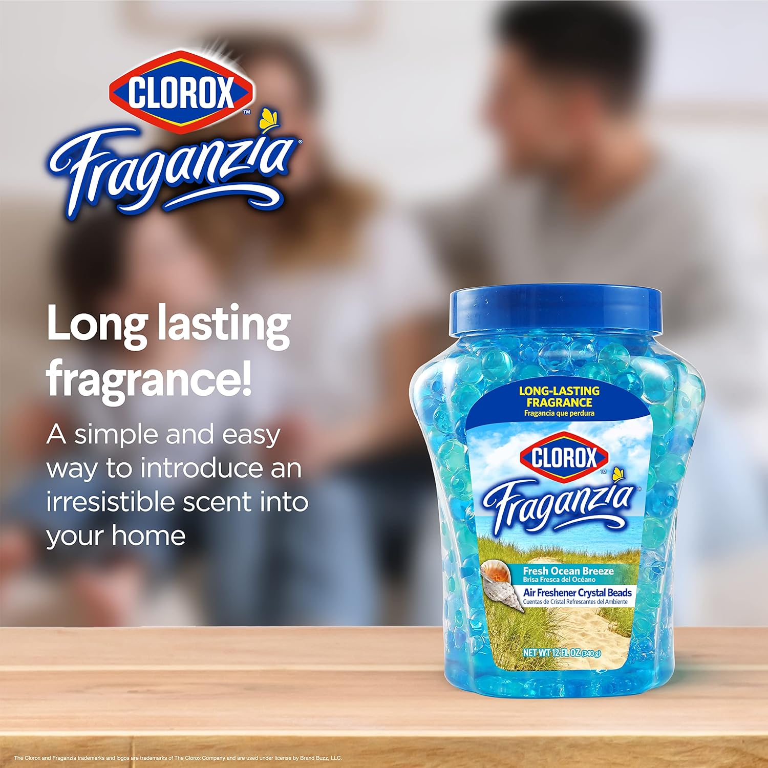 Clorox Fraganzia crystal beads air freshener helps keep spaces smelling fresh with a clean Fresh Ocean Breeze scent. Place the compact jar in rooms or small areas where you want steady fragrance and simple odor control without plugs or sprays. It is a convenient option for quick refreshes between cleanings. The odor eliminator gel bead formula is designed to provide long lasting freshness over time. Use it to help reduce everyday odors from bathrooms, cooking, pets, and trash, supporting a more comfortable environment for family, guests, and coworkers. The beads gradually release fragrance to help maintain a steady scent level. Twist open the jar and set it on a shelf, counter, or in a closet, then move it to adjust scent strength as needed. Ideal for bedrooms, offices, dorms, and cars, this 12 fl oz jar makes it easy to keep freshness available in multiple spaces. Keep one in a bathroom or entryway and another in the office for consistent freshness.