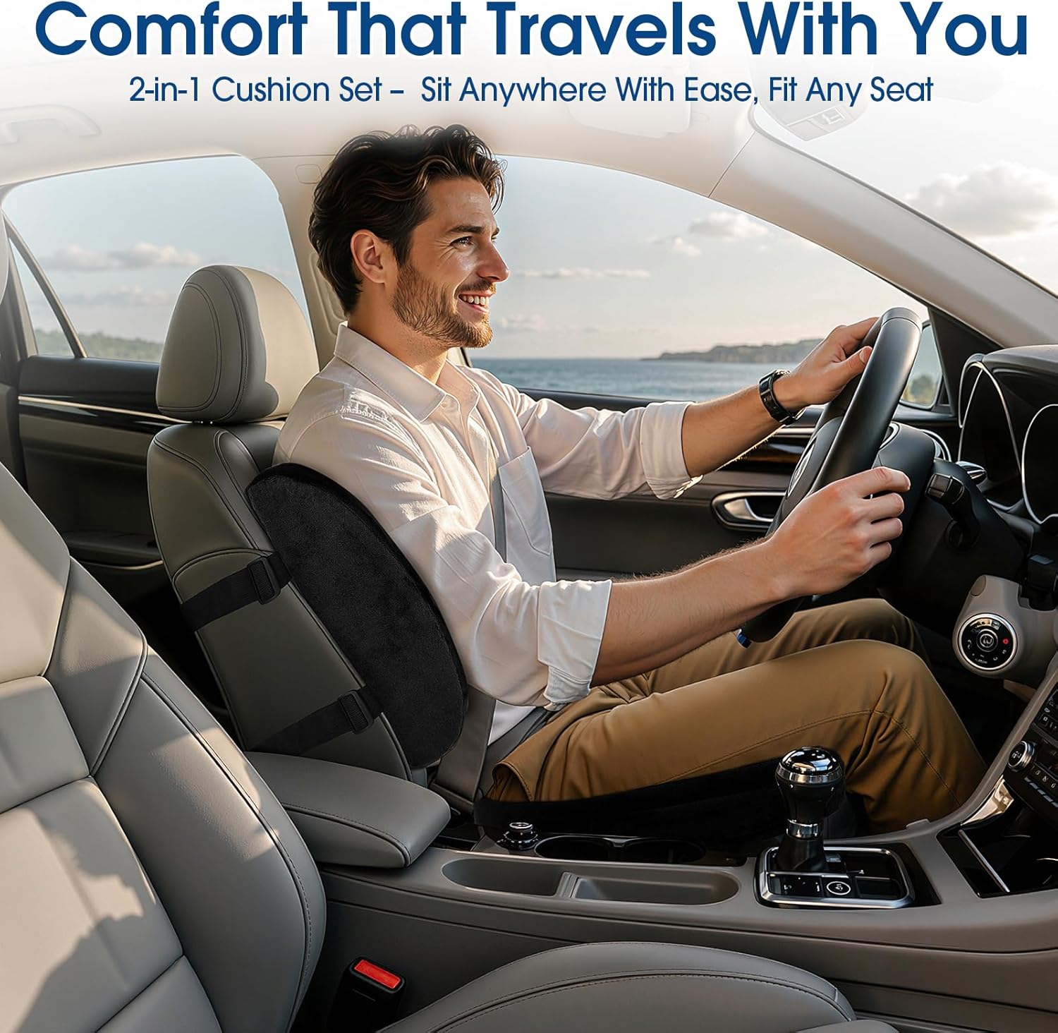 CloudBliss Lumbar Support Pillow & Seat Cushion Set for Office Chair, Desk Chair, Wheelchair & Car – Memory Foam Back Support, Ergonomic Chair Cushions, Sciatica Pain Relief, Home Essentials, Black