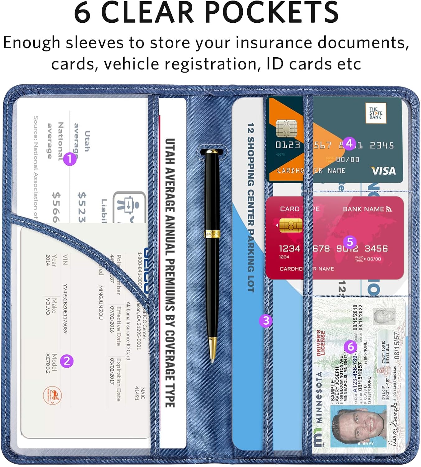 6 COMPARMENTS: Comes with 3 large pockets for insurance documents, vehicle registrations cards and other valueable information. And 3 small pocket for driver’s license, ID cards, business cards, key contact information cards.