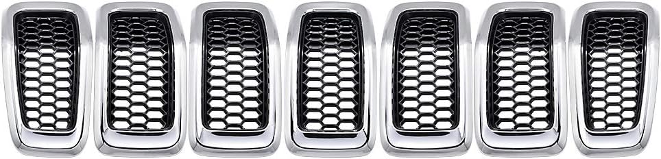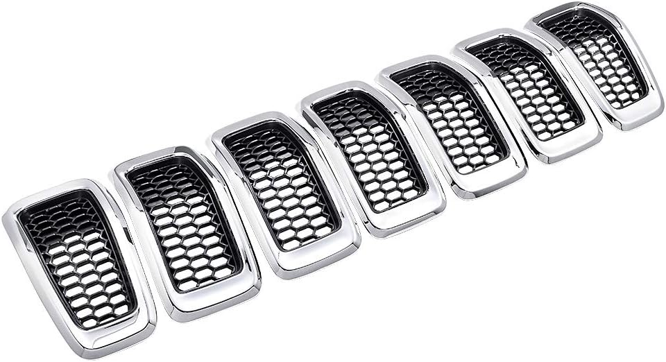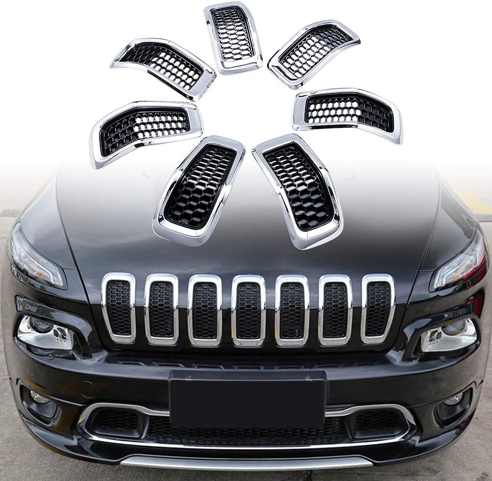 Package Includes: 1 set of Black Honeycomb Mesh Grille with Chrome Trim for Jeep Cherokee (7 pcs)