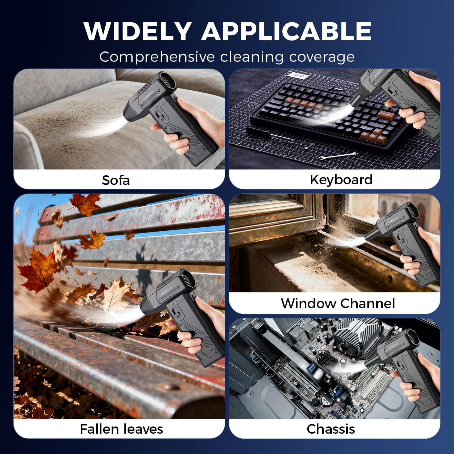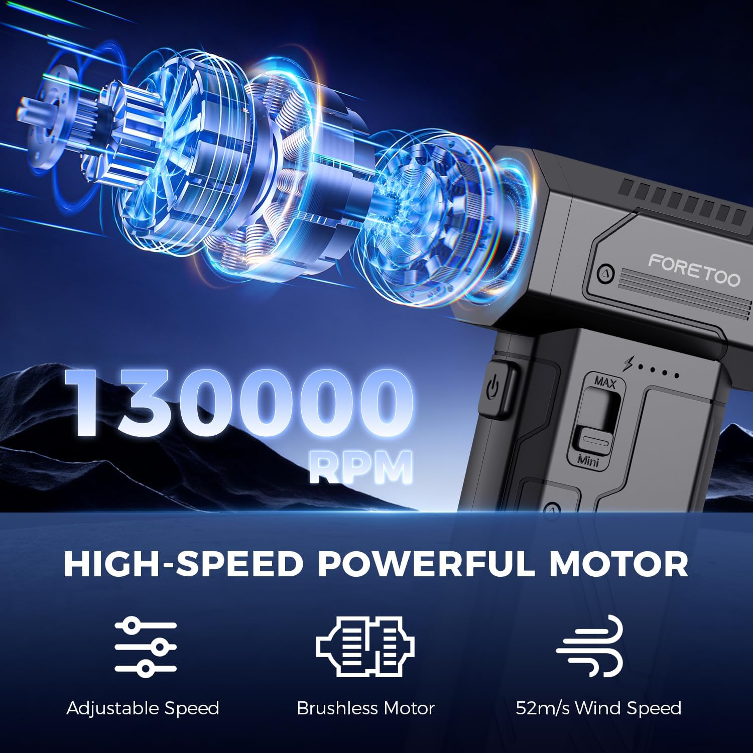 ✅ 130,000 RPM Air Duster Brushless Motor & 125g Strong Wind Power Experience hurricane-level blowing force with the 130,000 RPM high-speed brushless motor — a true “powerhouse” that outperforms ordinary dust blowers . Generating up to 125g of concentrated wind pressure, it effortlessly blasts away stubborn dust, sawdust, pet hair, crumbs, and debris from car crevices, keyboard gaps, electronic equipment, and workshop tools . The military-grade aluminum fan blades ensure durable, low-noise operation, making it ideal for both heavy-duty industrial use and daily household cleaning.