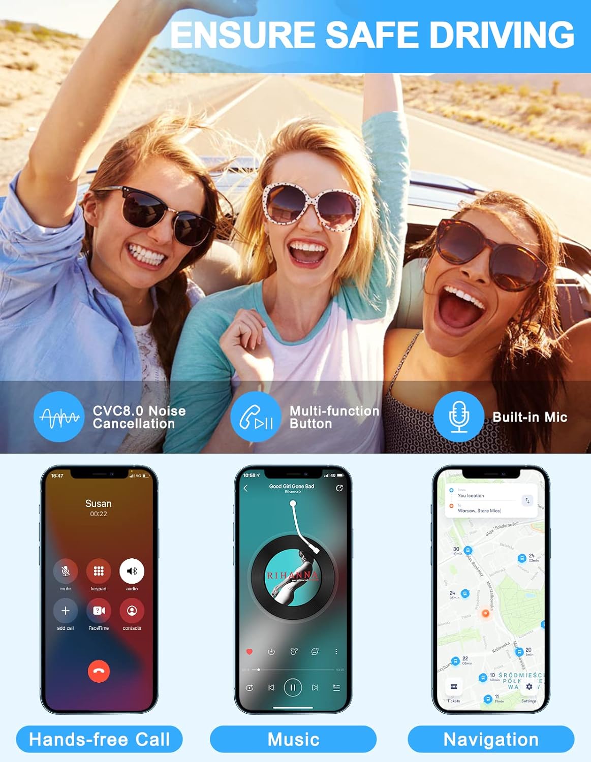 【Hands-free Calling & Navigation】The built-in microphone picks up sound, and the “MFB” button answers/redials/hang-ups/rejects calls to free your hands. Also, the Bluetooth audio receiver supports broadcasting voice notification from navigation Apps. You don’t have to look down the phone on the move. Make sure you drive safely!