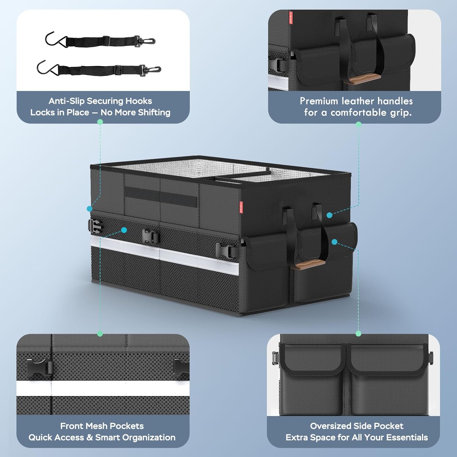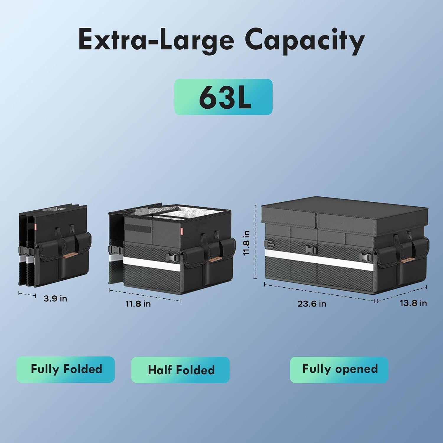 Collapsible Insulated Cooler Bag – Soft Travel Cooler Holds 45 Cans, Stays Cold for 8H & Warm for 6H – Portable Car Trunk Organizer for Camping, Beach, Picnic, Work & Outdoor Adventures