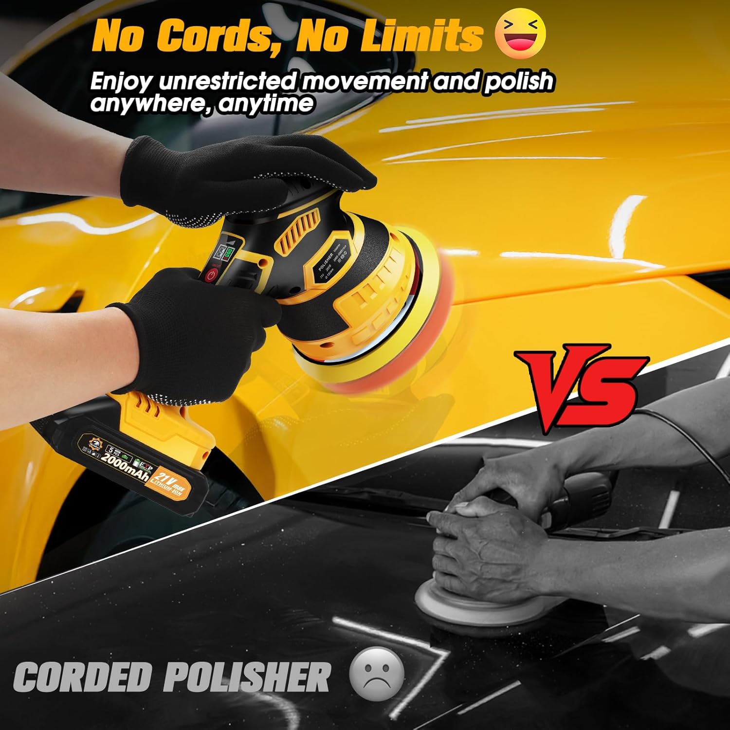 【Dual Battery Power】 Equipped with two 21V 2000mAh rechargeable batteries and a fast charger, this cordless buffer polisher ensures extended operation and stable performance. For best results, please fully charge the batteries before first use — a full charge allows the polisher to deliver its optimal performance. Whether you’re detailing a sedan or an SUV, you can complete the job efficiently in one go.