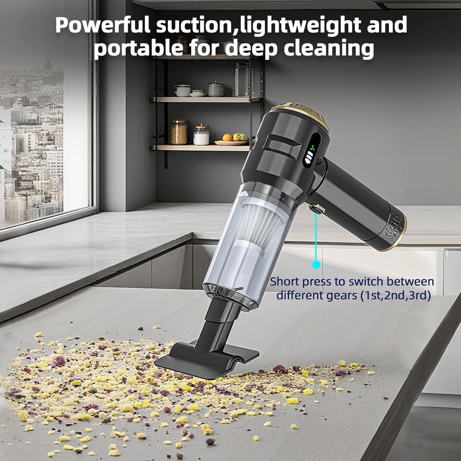 The Higoom Cordless Handheld Vacuum Cleaner delivers an impressive amount of functionality for its size and price point. Its 22000PA suction is strong for a battery‑powered unit, making it a practical tool for quick cleanups, car detailing, and keeping tight spaces dust‑free.Pros* Good suction for a compact, battery‑powered cleaner* Comes with 3 suction accessories for versatile cleaning* Includes 6 blower accessories (3 for cleaning, 3 for inflating), adding utility* Extra filter included, and the debris compartment is easy to empty* Solid battery life with a quick recharge timeCons* It’s loud, though that’s not unusual for a device this size and power* The power button is harder to press than expected, even though it requires only a slight depressionThe power button is the standout flaw here and easily costs the product a star. That said, once you get used to the feel of it, starting and stopping the vacuum becomes more consistent. On the upside, you won’t accidentally turn it on or off, and the same button is used to cycle through power modes, so the design at least keeps things simple.Overall, this vacuum is still a smart buy for the price. It won’t replace a full‑size vacuum, but for quick touch‑ups, car interiors, or keeping an office desk clean, it performs well and offers a lot of value.