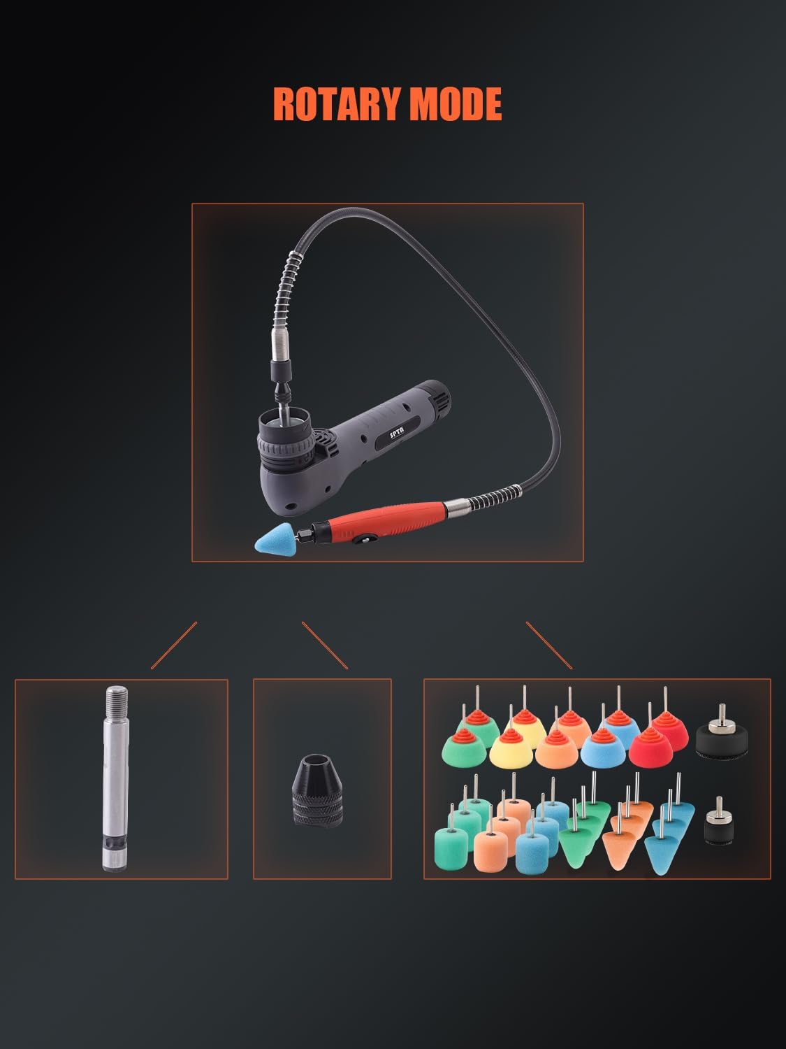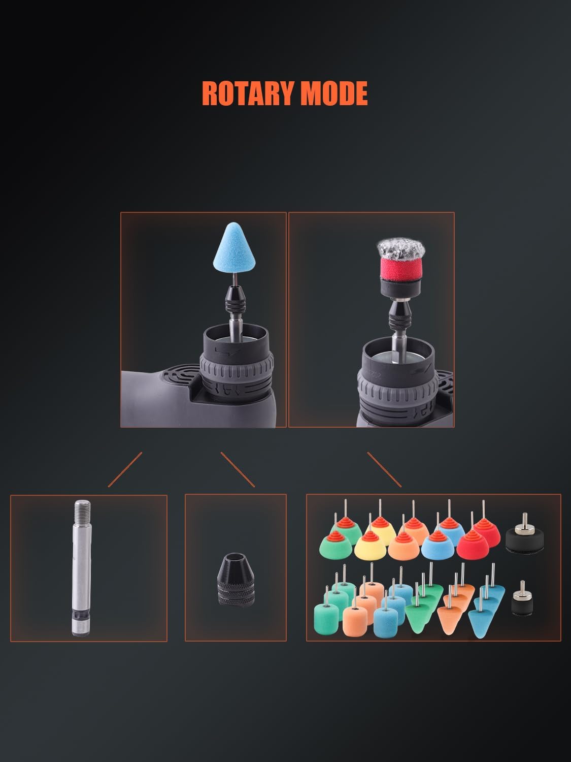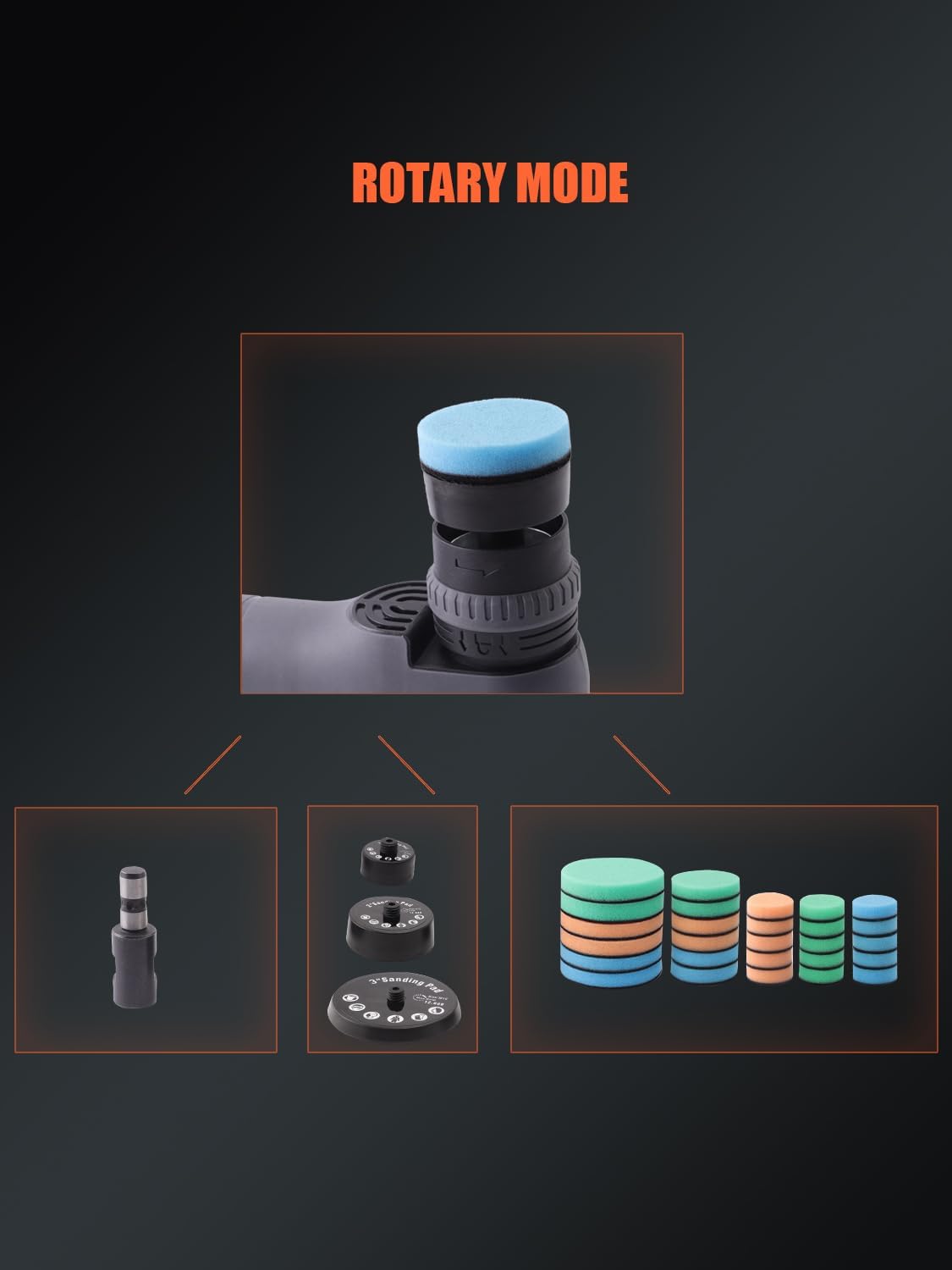 【Flexible Combination, Rich Functions】 You can choose to connect the shaft and mini sponge to realize the polishing of narrow or fine parts, such as the car headlights and window gaps; you can choose to connect the flexible shaft and mini sponge to realize more flexible detail polishing; you can choose to connect the base plate or eccentric block and large-size sponge to realize the fast and large polishing of straight or eccentric mode; you can also choose to connect the shaft and polishing bal