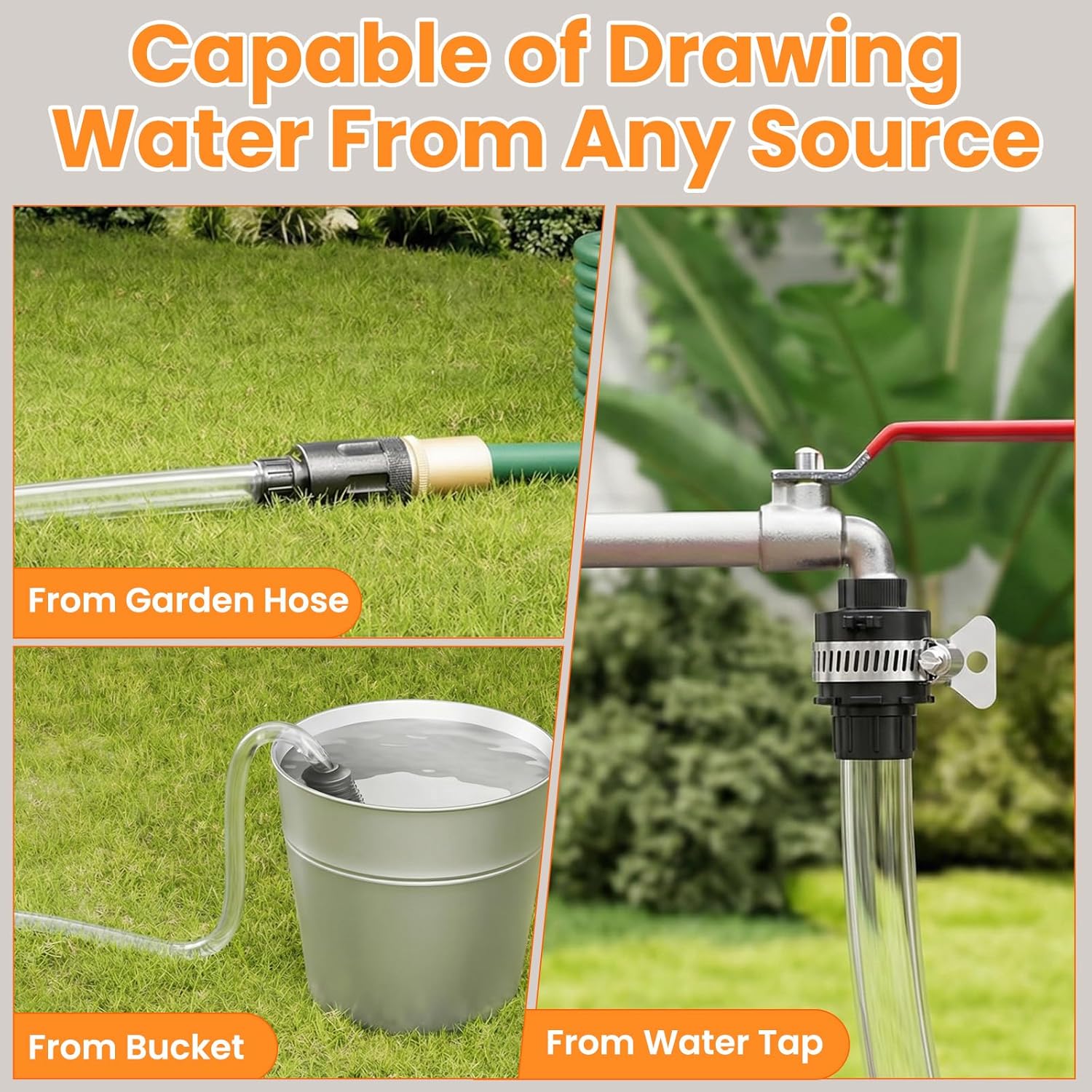 【Access Water Anywhere, Suitable For Any Situation】Our cordless pressure washer comes with a filter basket that filters various impurities in water to prevent clogging. You can draw water from a bucket, lake, pool, or any available water source—making outdoor cleaning much more convenient. Additionally, this hand held power washer’s versatility makes it suitable for multiple scenarios, including car washing, window/balcony/floor cleaning, plant watering, and other outdoor cleaning tasks.