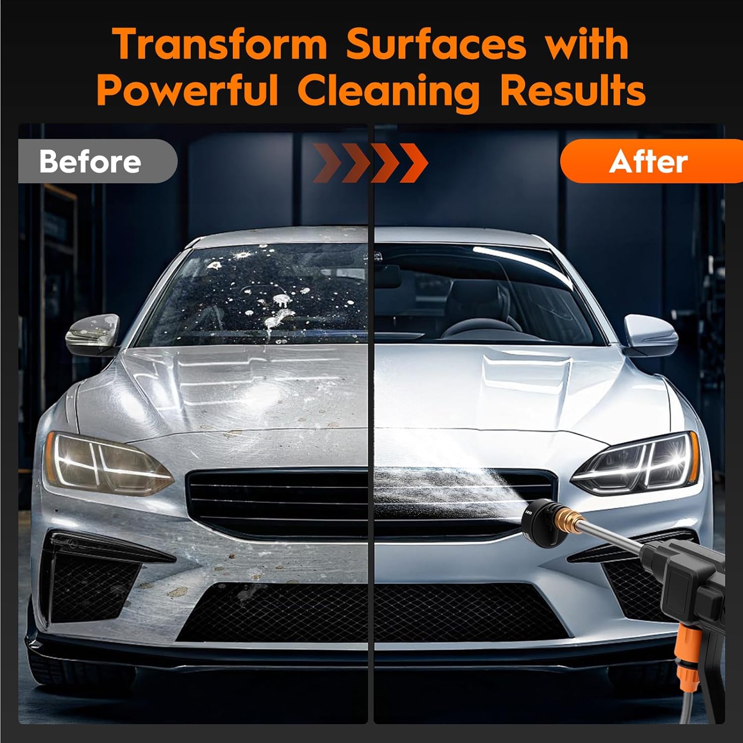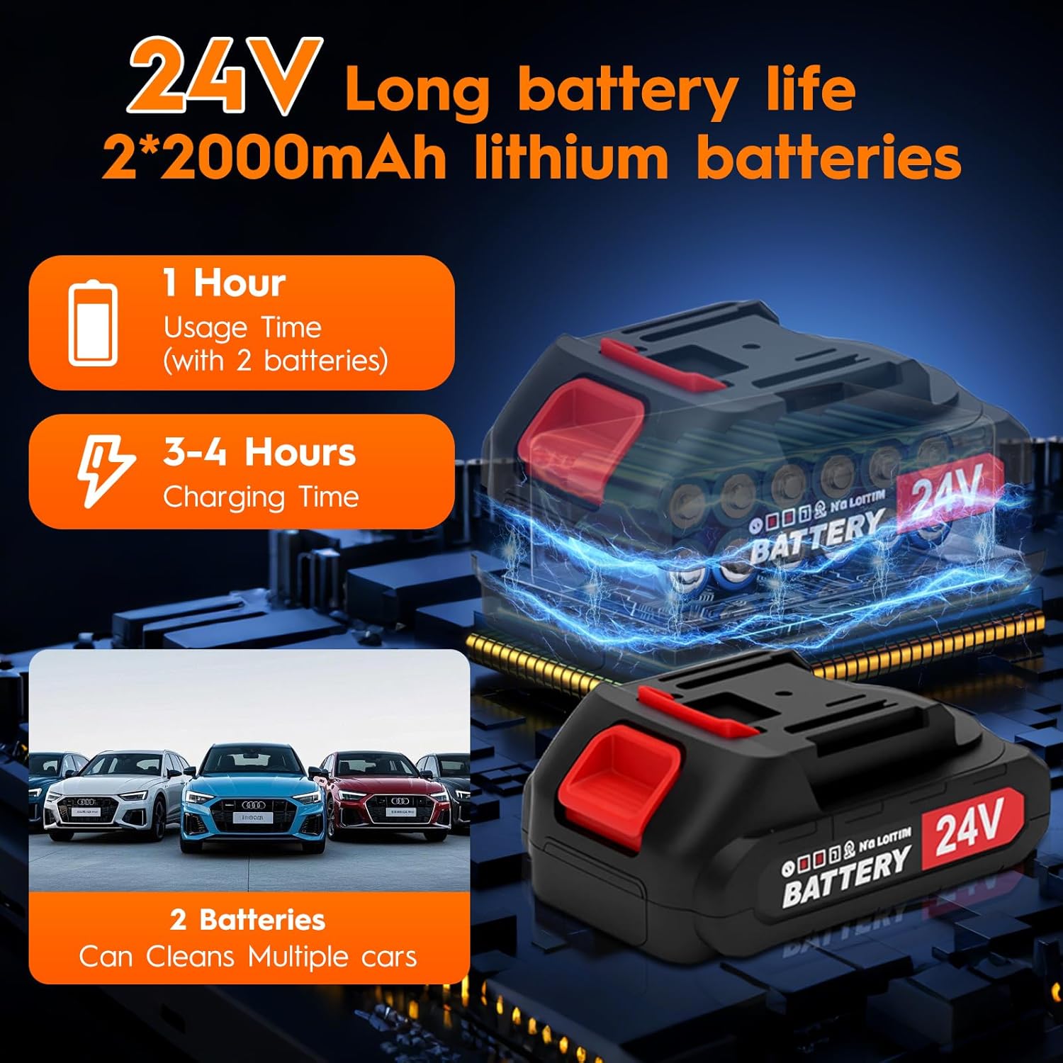 【2 High-Performance Replaceable Battery】- The Portable pressure washer is equipped with 2 replaceable batteries to ensure efficiency and convenience working. No need to worry about running out of battery mid-cleaning, experience a new realm of seamless cleaning. Design for cars and paving stones, no grime can hide.