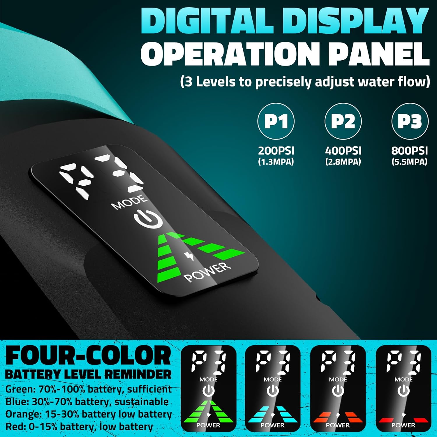 💦High-capacity 4.0Ah Battery & Digital Power Gauge: Equipped with a 4.0Ah high-capacity battery and charger, After multiple rounds of testing, the full point can maintain maximum power operation for 40+ minutes, tackle your entire cleaning list on a single charge. The digital LCD display shows your exact battery level at a glance—no more guessing when you’ll run out of juice.