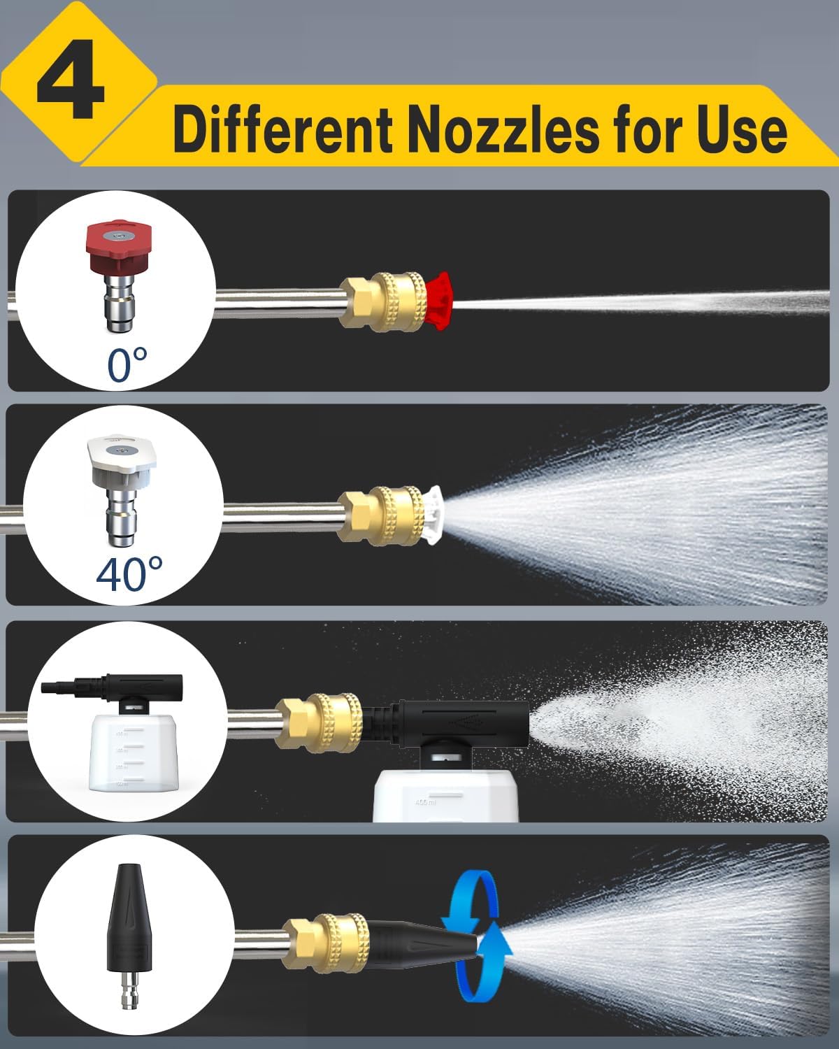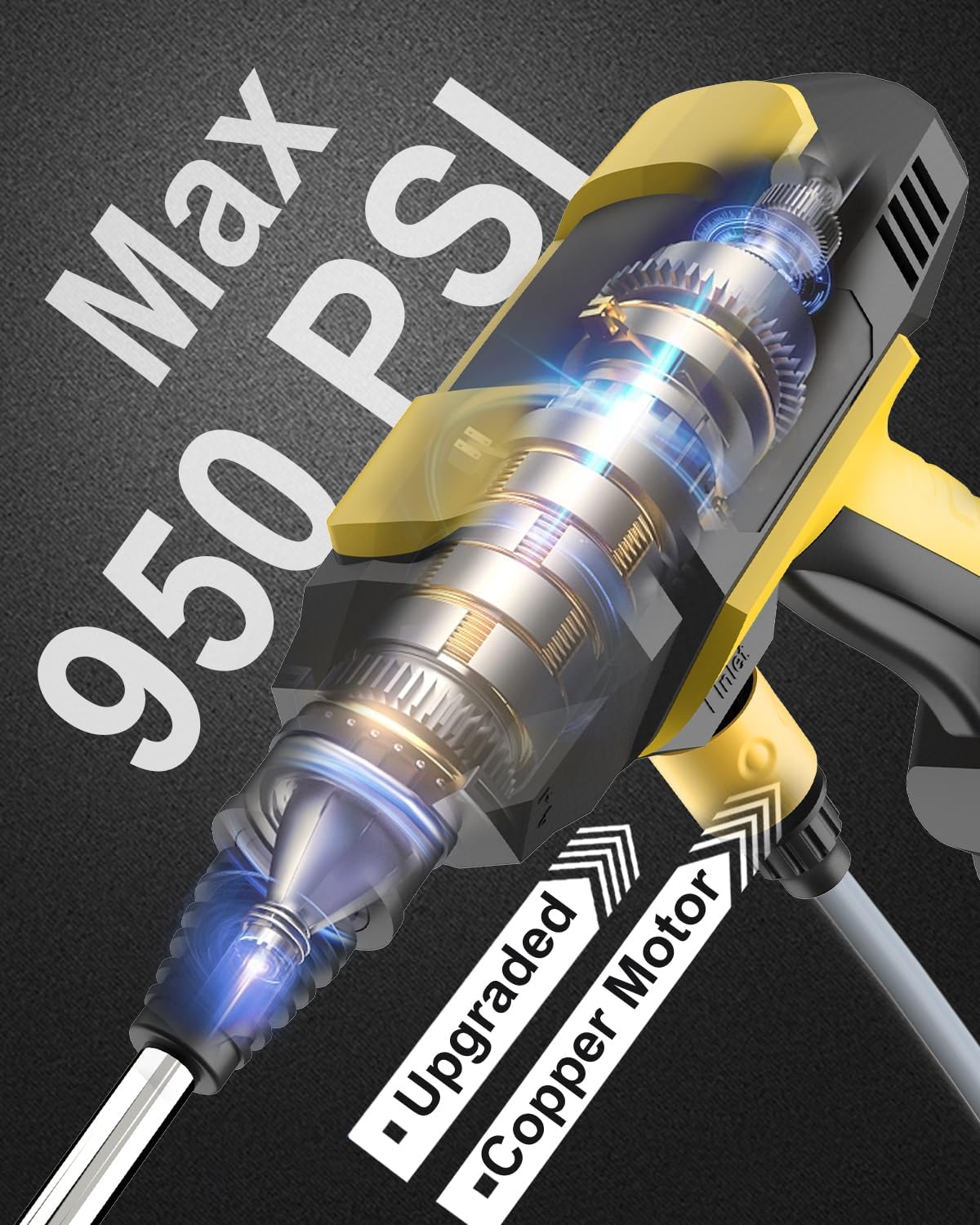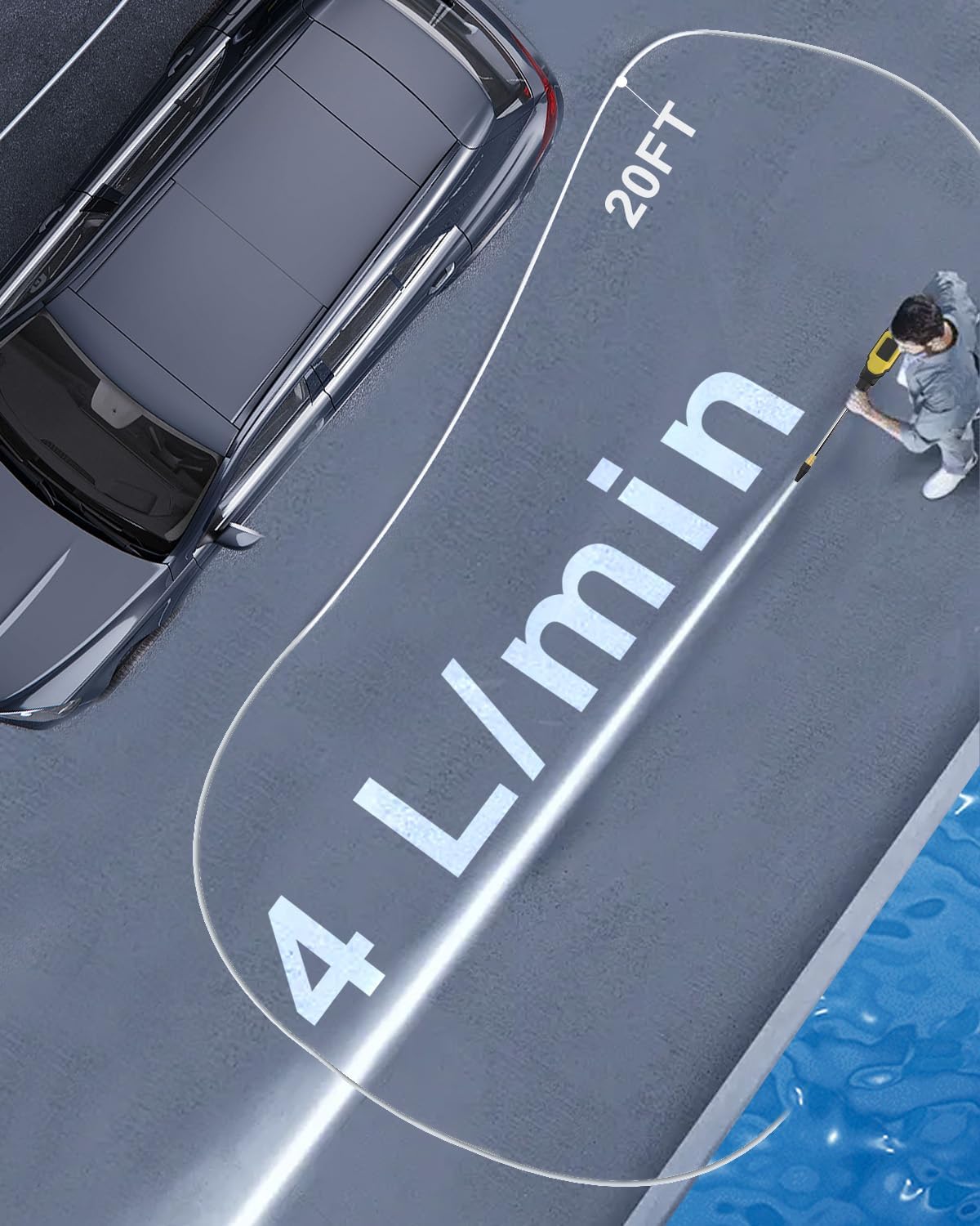 Experience Unrivaled Performance: Cordless pressure washer delivers an 950PSI pressure and a 1.2GPM flow rate, ensuring the swift removal of stubborn dirt and sta