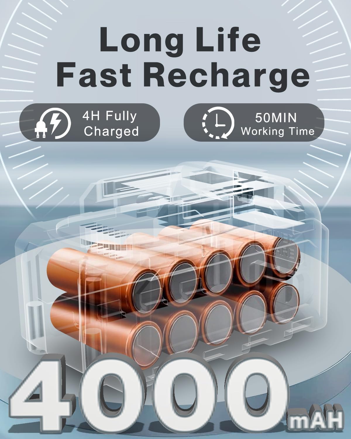 Powerful 4.0Ah 21V Battery: Experience the portable cordless pressure washer equipped with a 4.0Ah battery, offering long-lasting power and consistent reliability. With this 21V battery, enjoy up to 50 minutes of uninterrupted cordless pressure washer usage on a single charge. The cordless pressure washer battery powered offers unparalleled portability, allowing users to move freely without being tethered to a power outlet