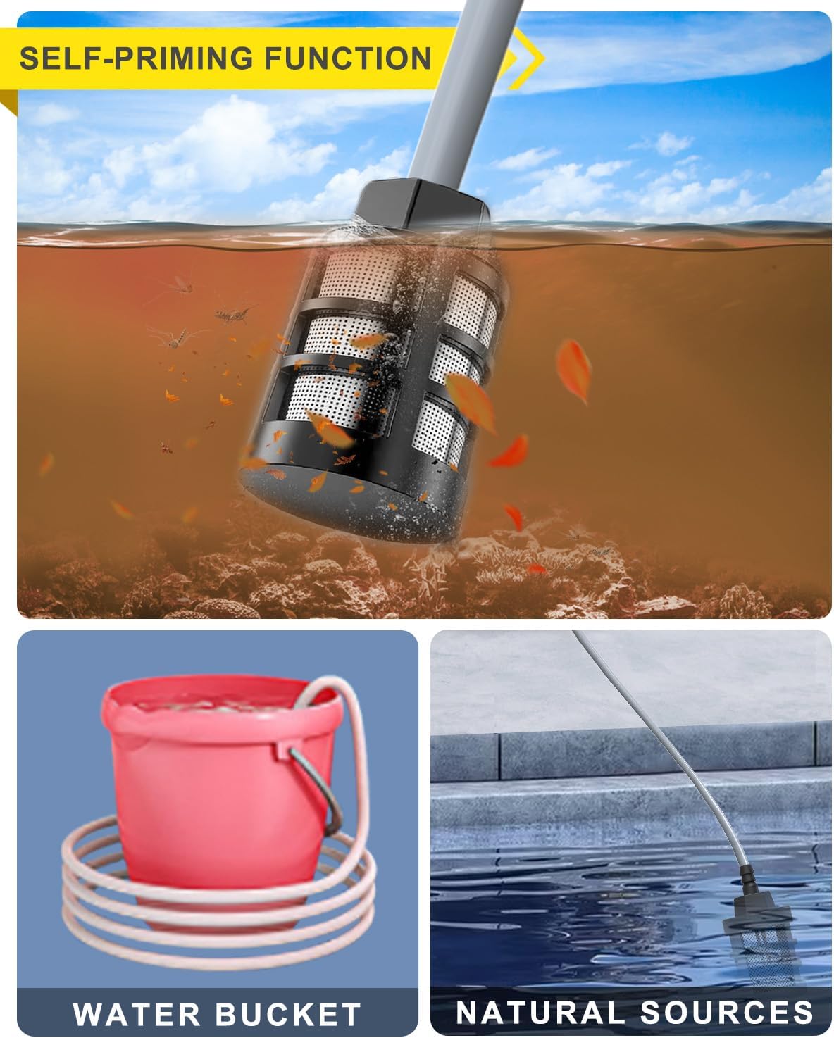 The Upgraded Water Filter: Cordless power washer battery powered features an upgraded water filter, efficiently removes stubborn dirt, dust, and sand. Prevent the water gun from clogging, but also bring excellent cleaning results. Allowed you to pump water from buckets, pools, rivers, or any water sources, providing convenience and versatility for your cleaning tasks