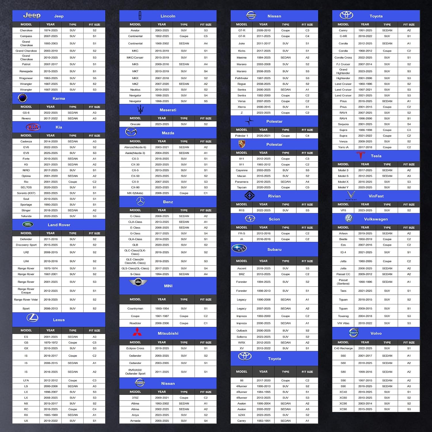 【Custom car cover】Find your vehicle in the SIZE CHART. Cotryvox offers the latest and most comprehensive car size chart for 2025, guaranteeing that each car in the size chart can be tailored to the results. (see the Size Chart in images 5 to 6).