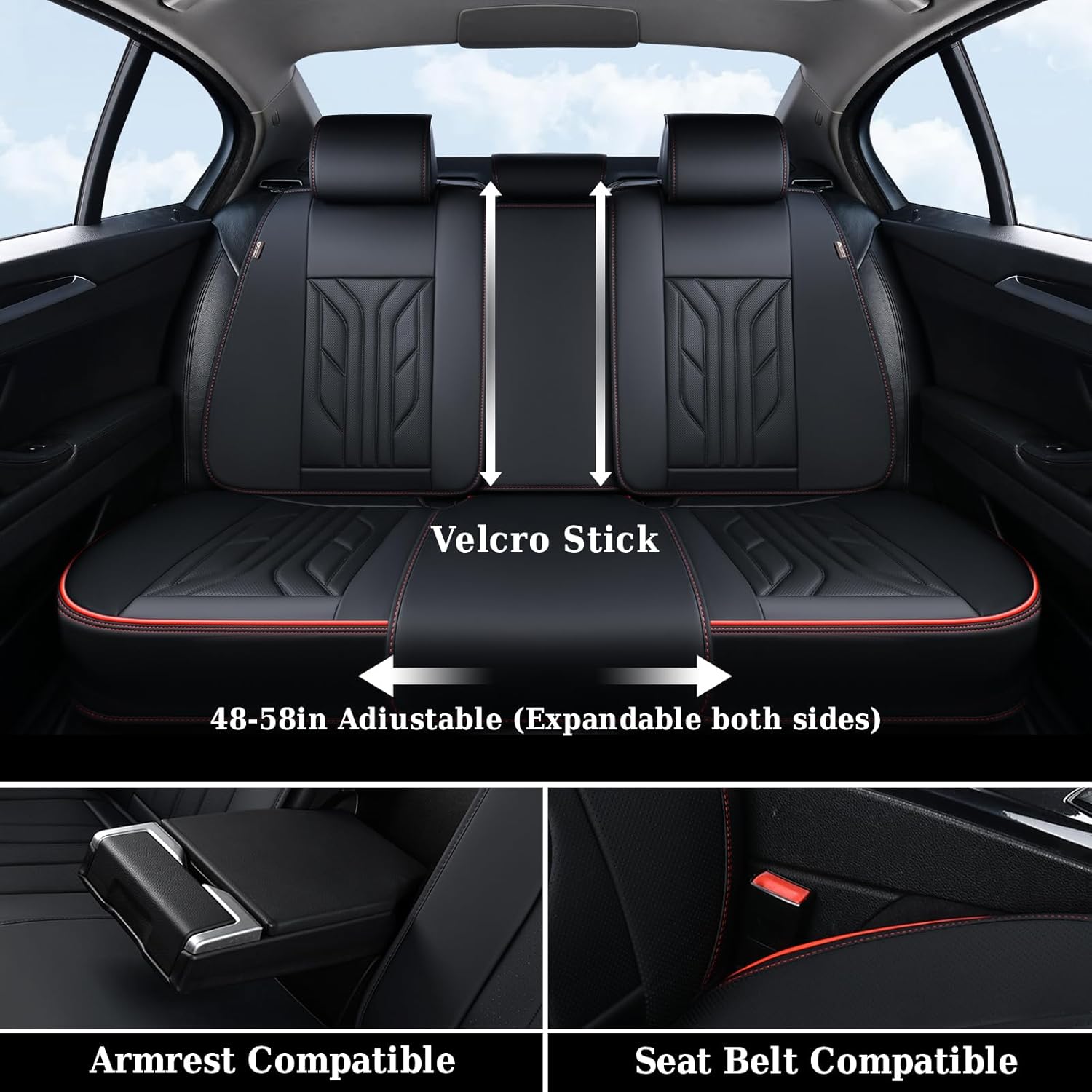 Coverado Seat Covers, Car Seat Covers Full Set, Leather Seat Covers for Cars, Automotive Seat Covers Car Seat Protector Car Accessories Fit for Most Sedans SUV Pick-up Truck(Black&Red)