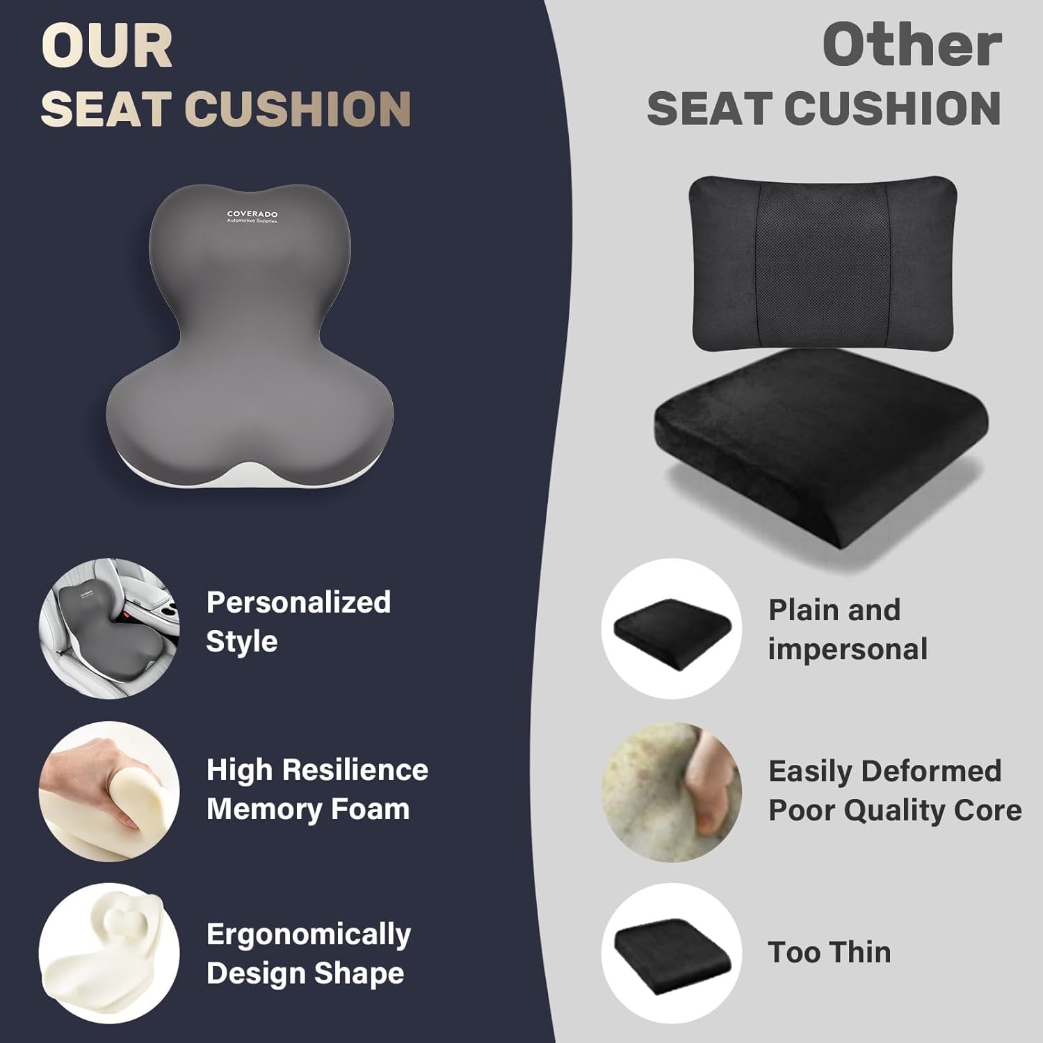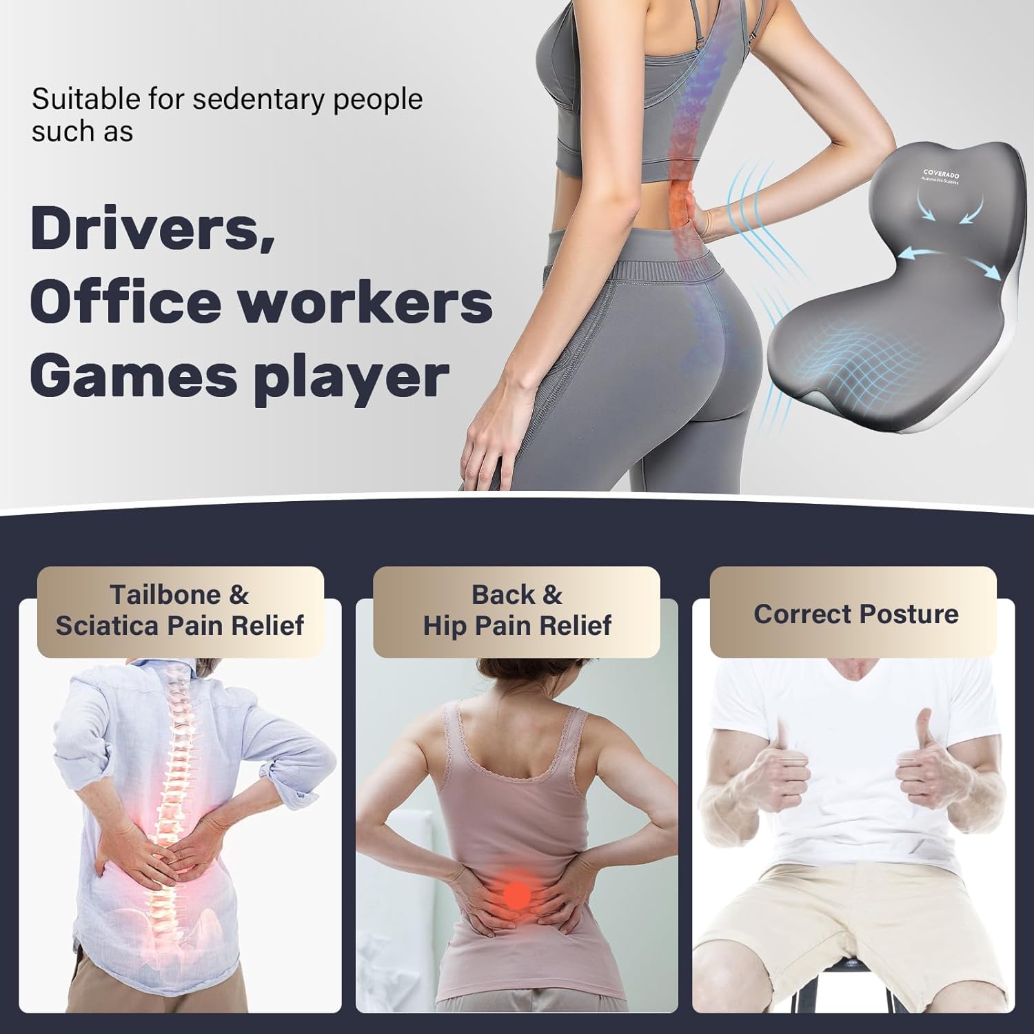 I didn’t realize how much I needed the Coverado Seat Cushion and Lumbar Support Pillow until I started using it every day. The difference it made was almost instant. The memory foam feels supportive without being too firm, and it molds perfectly to my body—especially around my lower back and tailbone. I deal with long hours sitting in both my car and at my desk, and this set has genuinely helped reduce my sciatica flare-ups and overall back discomfort.The lumbar pillow hits the exact spot where I tend to slouch, and it gently keeps me in a healthy posture without feeling forced. The seat cushion adds that extra lift and comfort I didn’t know I was missing. Even after hours of sitting, I don’t feel that usual stiffness or tailbone pressure anymore.What I love most is how versatile it is—I can switch it from my office chair to my car seat, and it instantly makes any chair feel ten times more comfortable. The quality feels premium, the cover is breathable, and it stays in place without sliding around.If you’re dealing with back pain, tailbone pressure, or just want a more comfortable sitting experience every day, this Coverado cushion set is absolutely worth it. It’s one of those upgrades that you feel every single time you sit down.