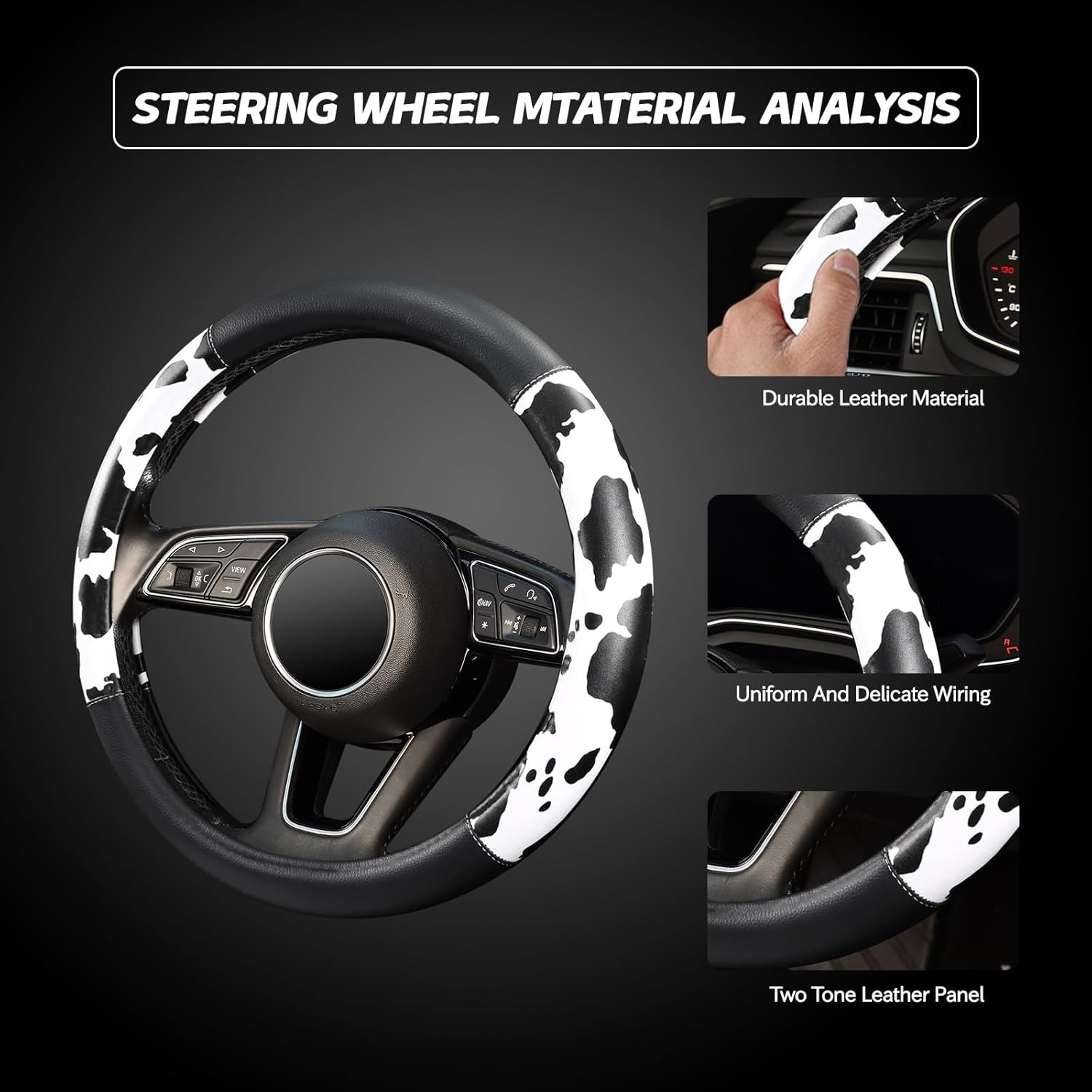 Fashionable Design: Compared with other steering wheel covers, this cow steering wheel cover not only brings you excellent tactile and visual effects, but also increases friction to prevent steering wheel from slipping.so it will keep your hands dry by preventing sweat during hot weather