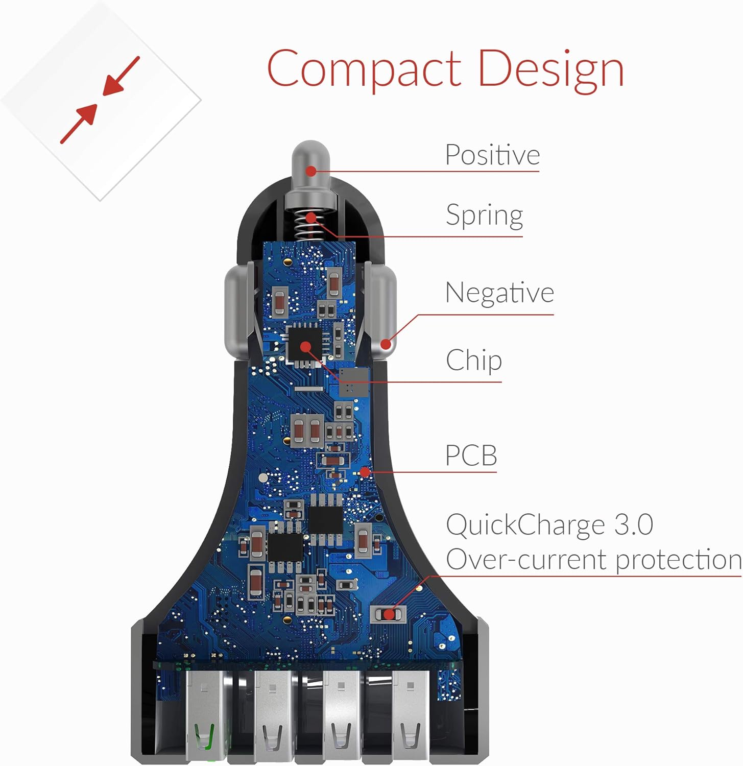 This compact socket type car charger is excellent. The “Quickcharge 3.0 does what it claims, charging your phone quickly. On a road trip, I had three phones charging and a power supply too. Has in the two years I’ve been using it, never failed, threw a fuse or disappointed in any way. Build quality is excellent, versatility and functionality are first rate. Even the price is not too bad. If you need something like this charger for your car, you’ll be glad to have purchased this one. I was.