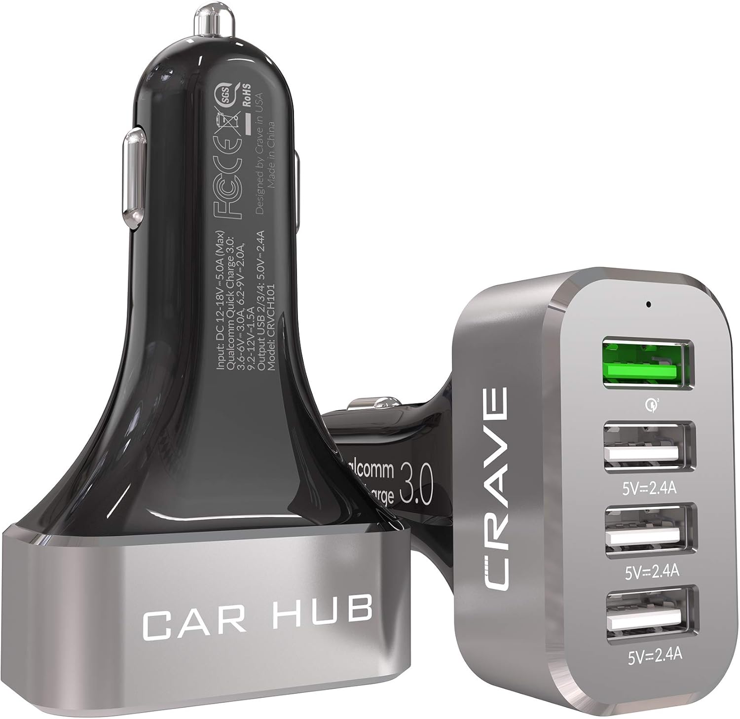 I really love this Crave USB car charger. It is well built and it has a great design. It has great charging ability’s it has Quick Charge 3.0… smart charging knows the required voltage for your device. its input voltage is 12-18 volts …. output is USB Quick Charge 3.0……… 3.6 volts to 6 volts At 3 AMPS…… 6.2 volts to 9 volts at 2 AMPS…. 9.2 volts to 12 volts at 1.5 AMPS. IT also charges at 2/3/4 : 5.0 volts at 2.4 AMPS. It also has over current protection and has surge protection, short Circuit protection. it is nice to plug in 4 devices and it charges them very quickly. i love how it will charge any device that we need charged.GREAT PRODUCT.