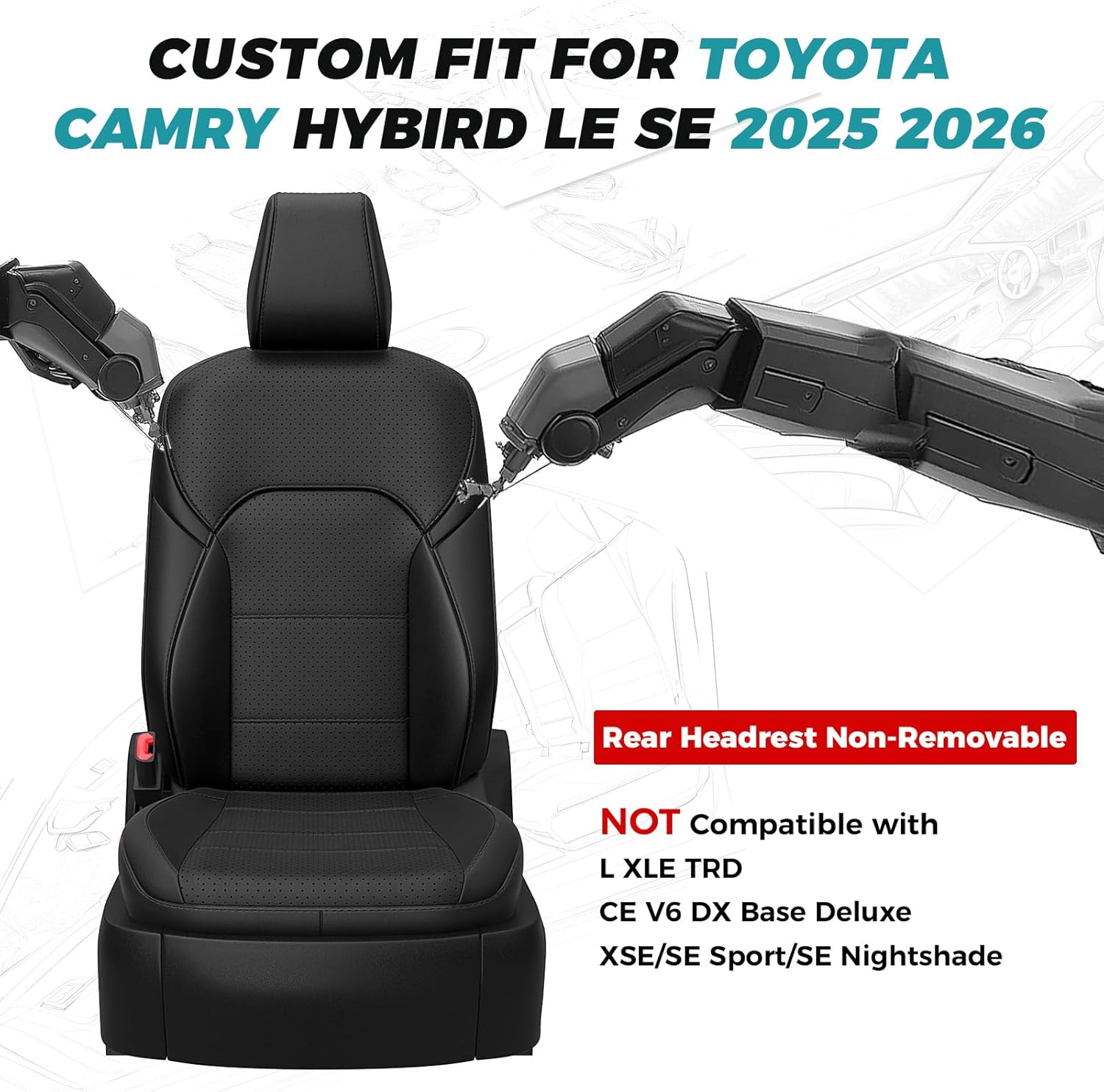 Perfect Custom Fit: Designed exclusively for 2025-2026 Toyota Camry LE/SE. Our 1:1 tailored covers hug every curve to prevent shifting or bunching on daily commutes or road trips, delivering a seamless, factory-installed look.
