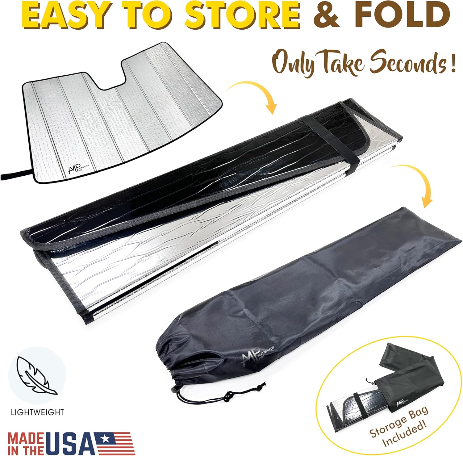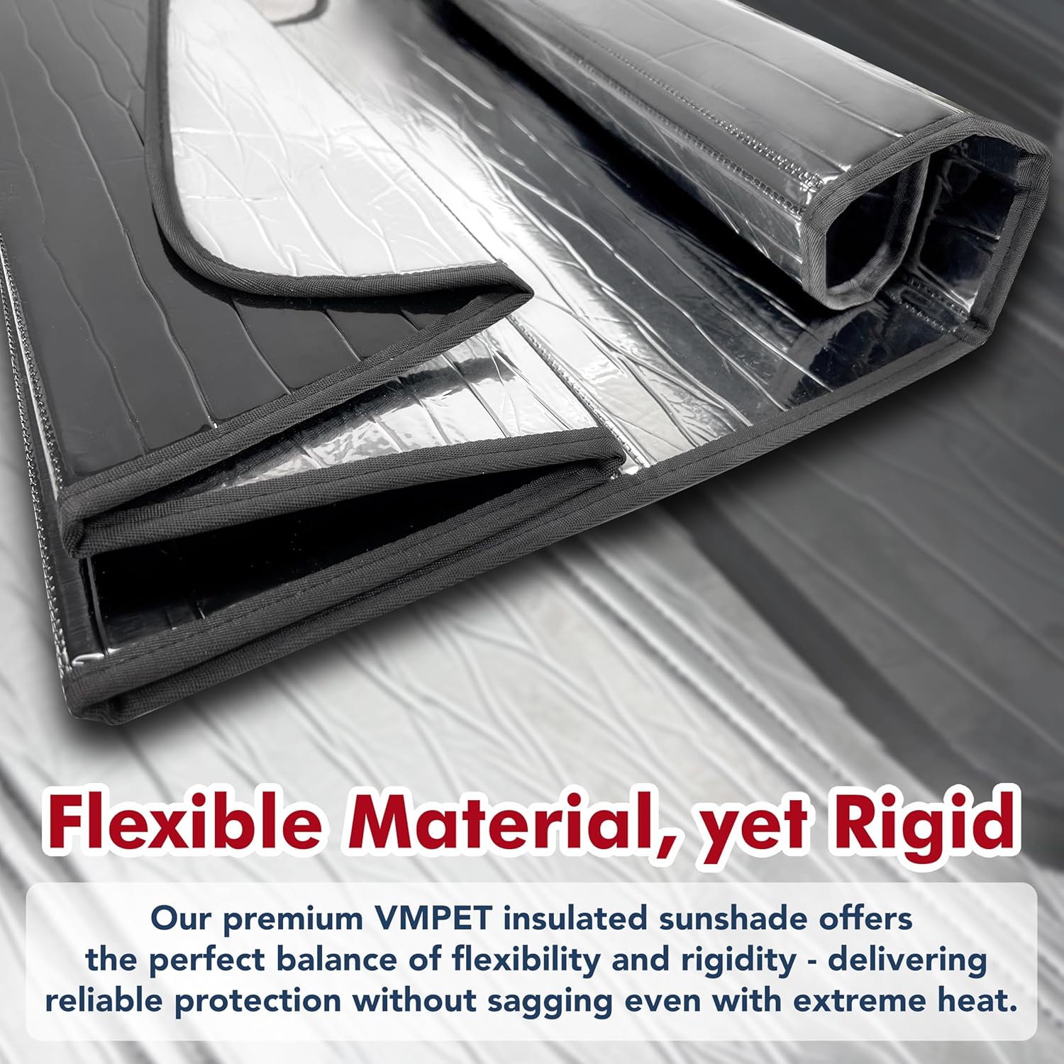 Built Tough to Last: Constructed with high-quality, multi-layer insulation (foam core, insulated back layers, and reflective mylar film) for long-lasting durability and effective heat reflection. Featuring a sturdy outer layers and a soft interior, this sunshade combines rigidity and flexibility for easy handling and reliable performance.