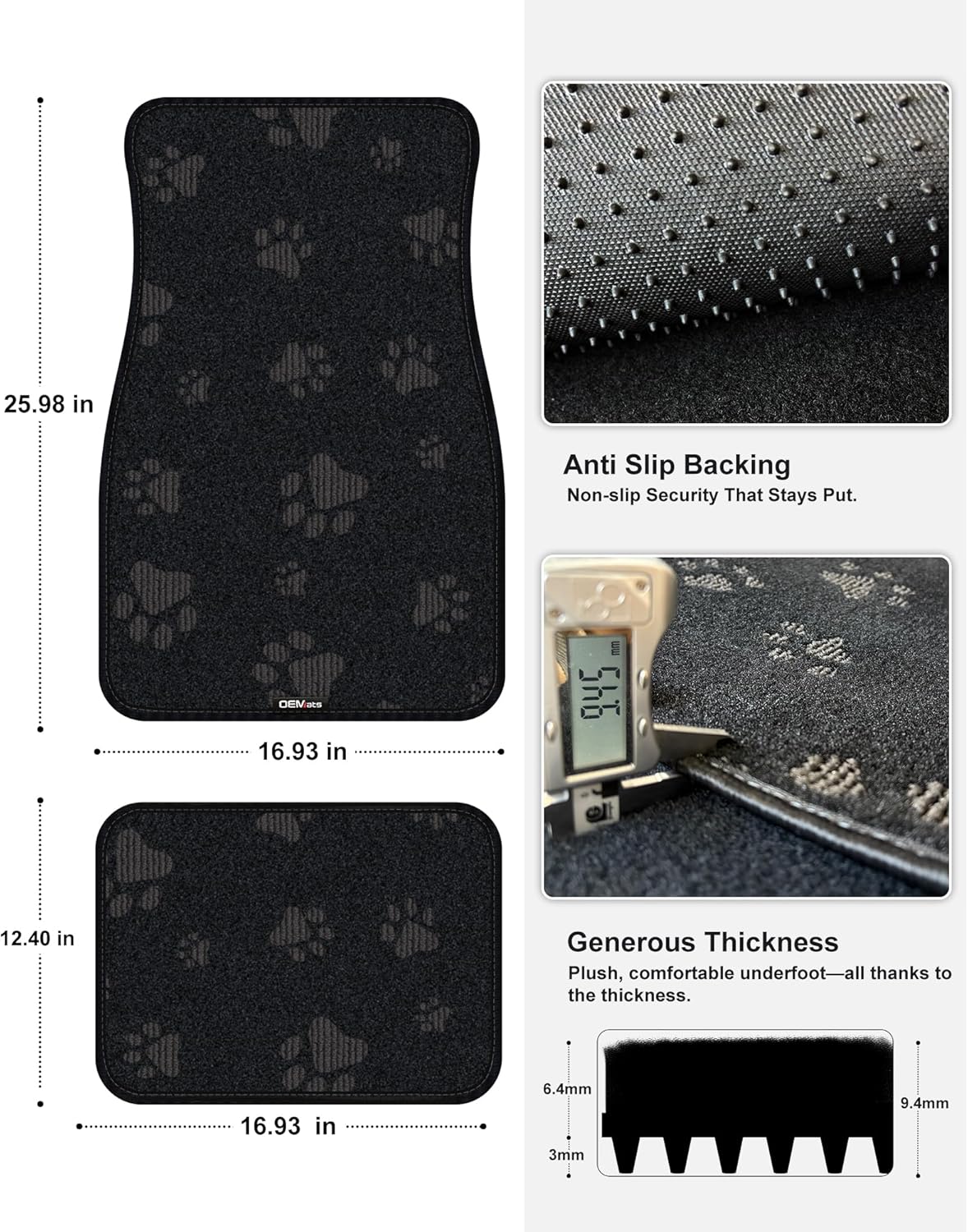 🐾 Cute Embroidered Paw Design: Show your love for pets every time you drive. OEMATS car floor mats feature adorable embroidered dog paw patterns, adding warmth and personality to your vehicle while upgrading standard automotive floor mats with a stylish pet-lover look