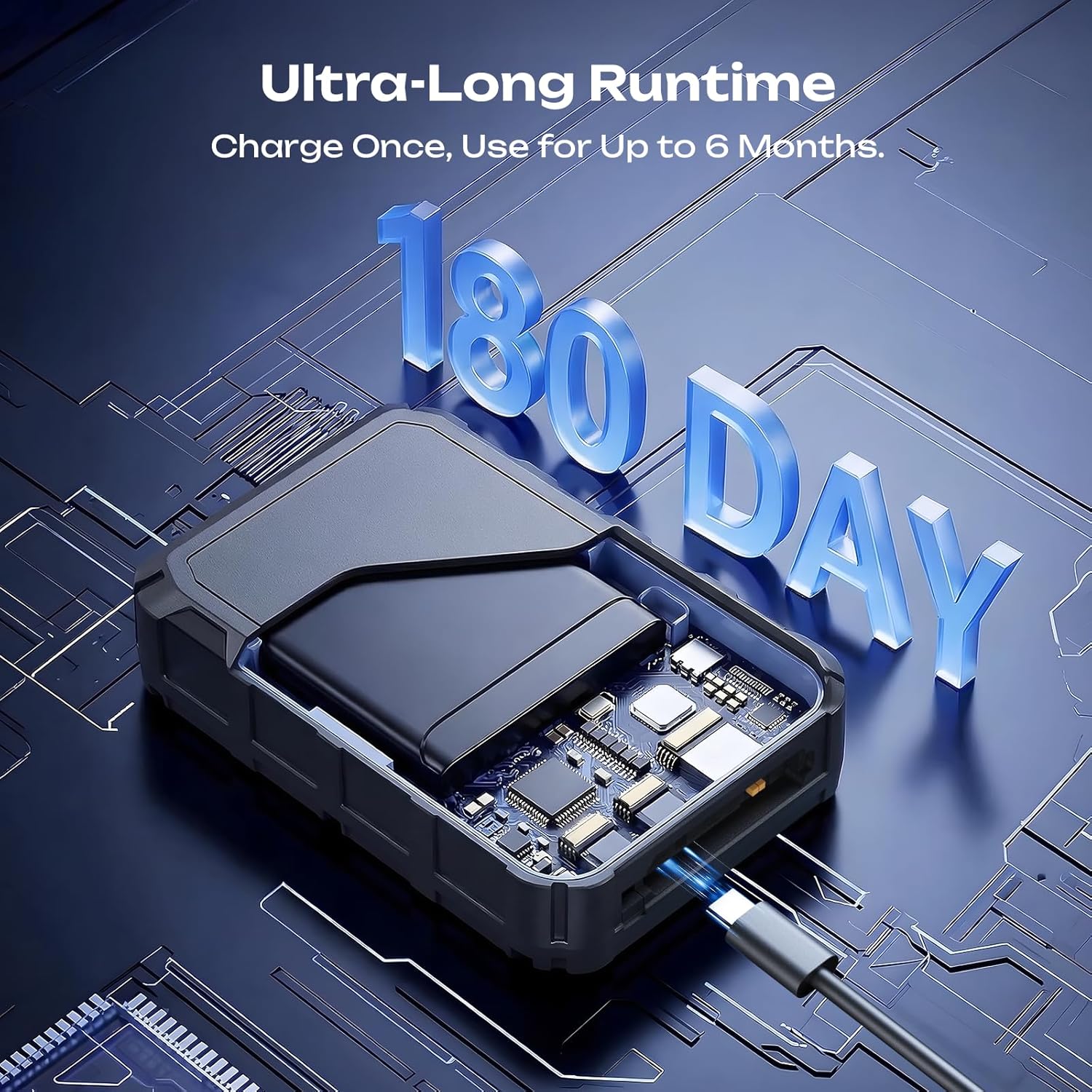 Extended Non-Stop Performance: Charge once to enjoy up to 6 months of non-stop real-time tracking with this vehicle tracker. Switch to power-saving mode for an extended runtime of 6–12 months—ditch frequent recharges for totally hassle-free use, ideal for long trips, remote asset monitoring, or off-grid scenarios with limited power access. It also supports 6-month historical route playback, letting you review every journey detail and trace critical location records effortlessly.