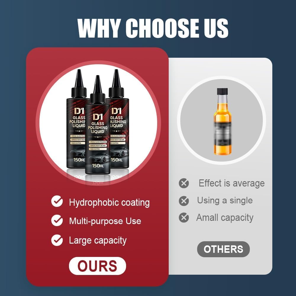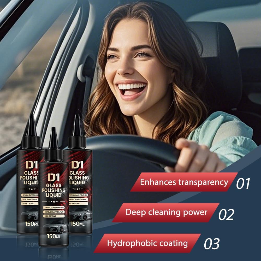 【2025 New Powerful Oil Film & Scratch Removal】Glass Polishing Liquid D1 is a powerful automotive glass polish that removes tough oil film, wiper streaks, and fine scratches from windshields and windows. Formulated for deep cleaning and clarity restoration, it helps improve visibility and enhances driving safety. Ideal for regular glass maintenance and pre-treatment before applying coatings.