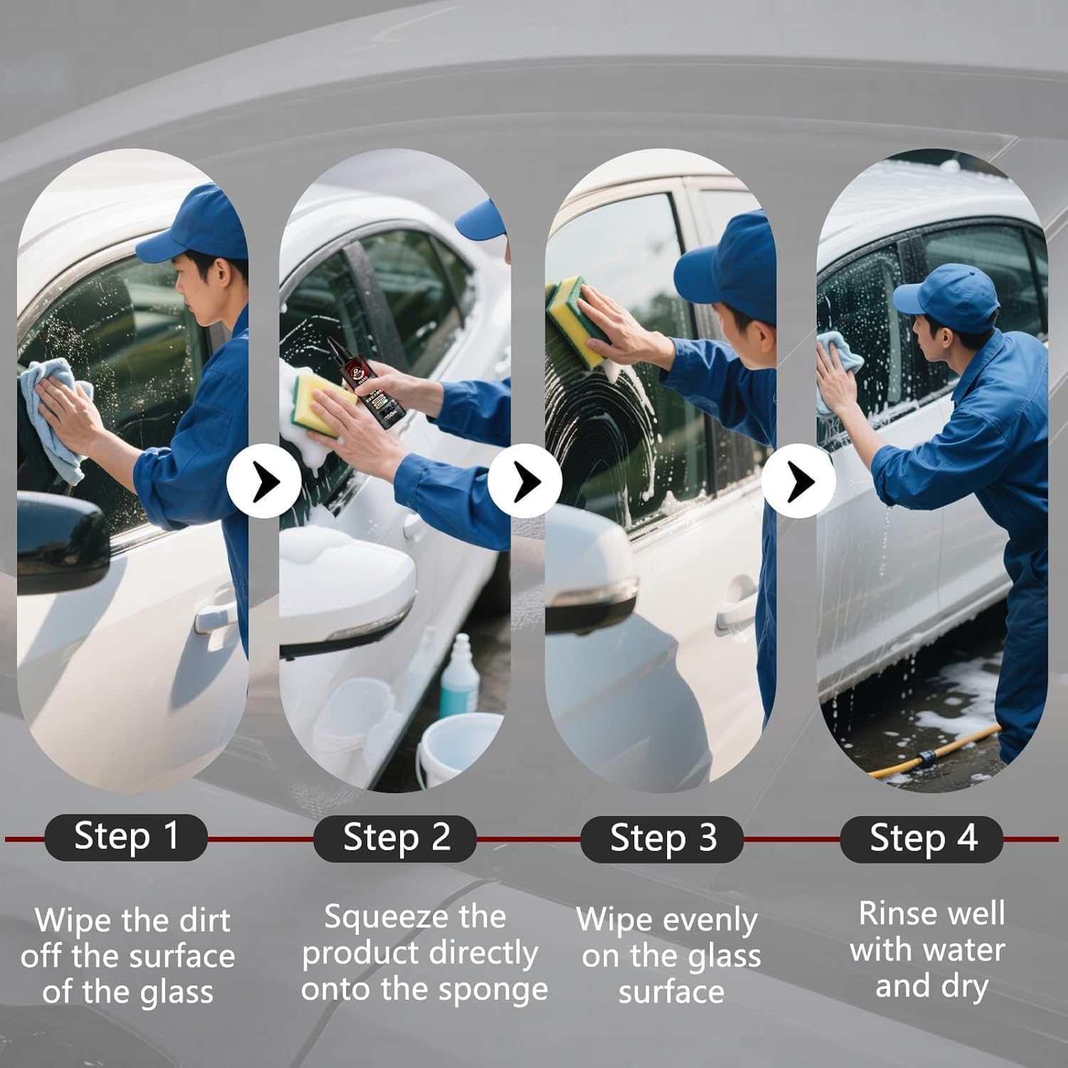 【Glass Polishing Compound】Easy to use with no special tools required — simply apply Glass Polishing Liquid D1 to your car’s windows using the included sponge or cleaning cloth, rub in circular motions, and rinse with water. Perfect for quick and effective glass care at home or on the go.
