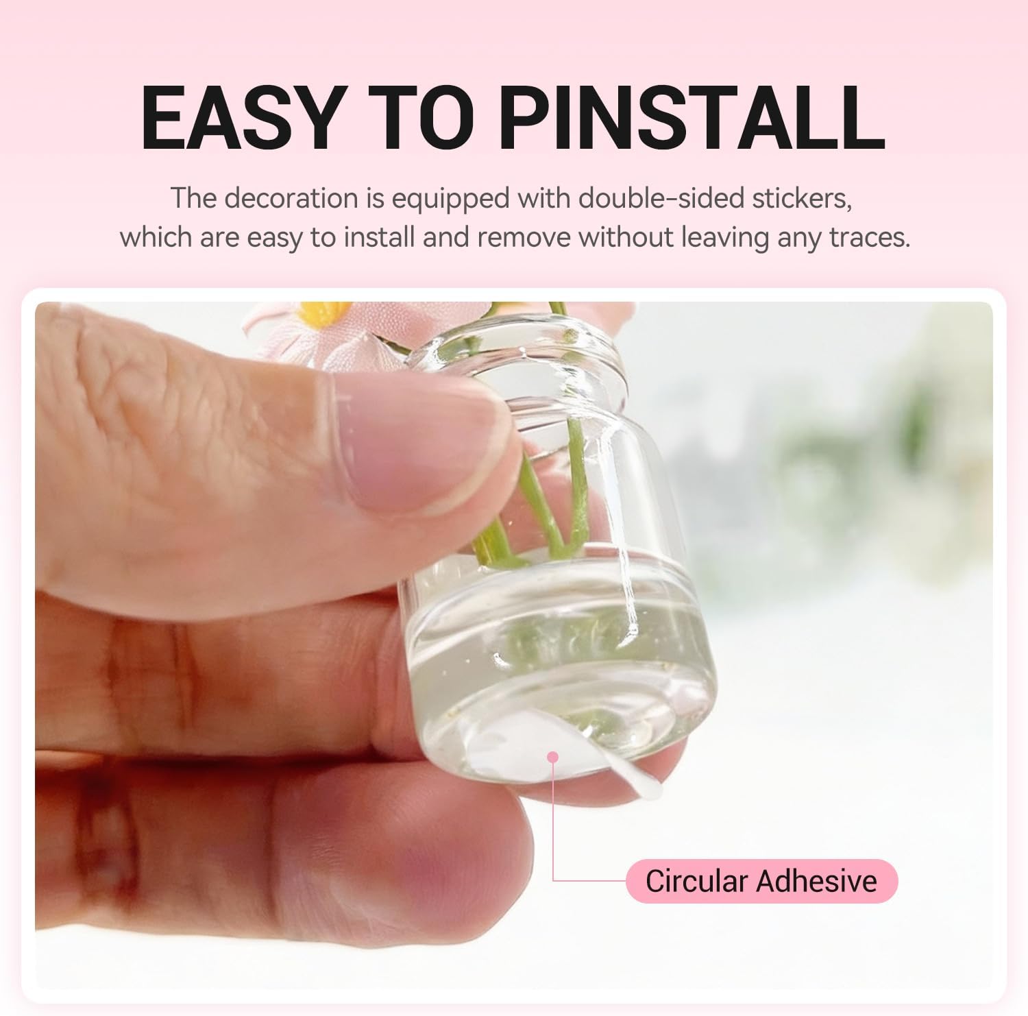 Stays Securely in Place & Easy to Put On – Each vase is equipped with strong double-sided adhesive dots that stick really well to dashboards, monitors, or window seals. The application is simple and fast, ensuring your floral decor remains stable even on bumpy roads or high-vibration surfaces like boat interiors.