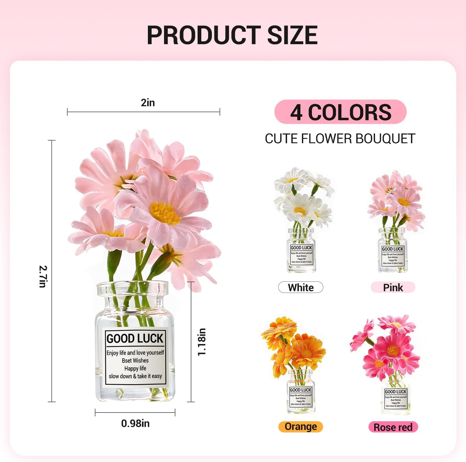 Compact & Safe for Teen Drivers – These mini daisies are just the right size (approx. 3 inches) to fit anywhere in the car without blocking your view. The low-profile design ensures they are safe to use while driving, making them a popular choice for teen car accessories.