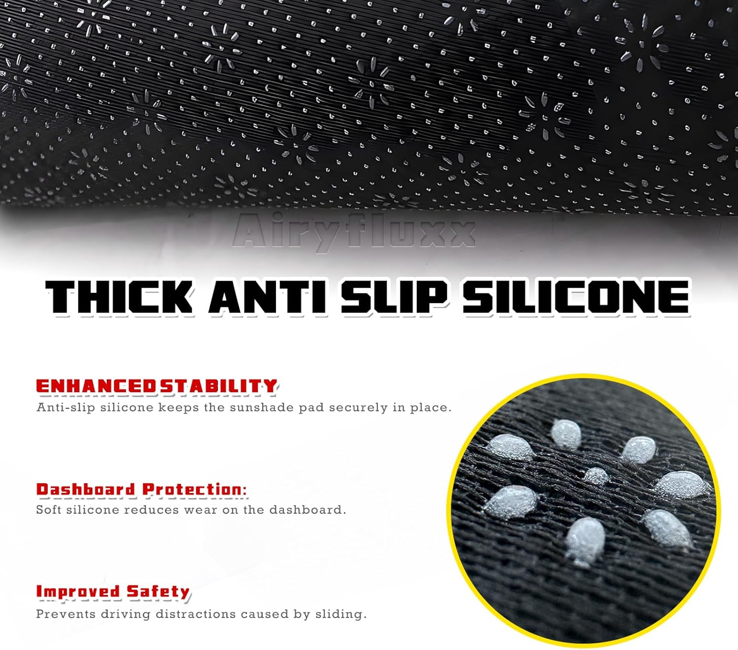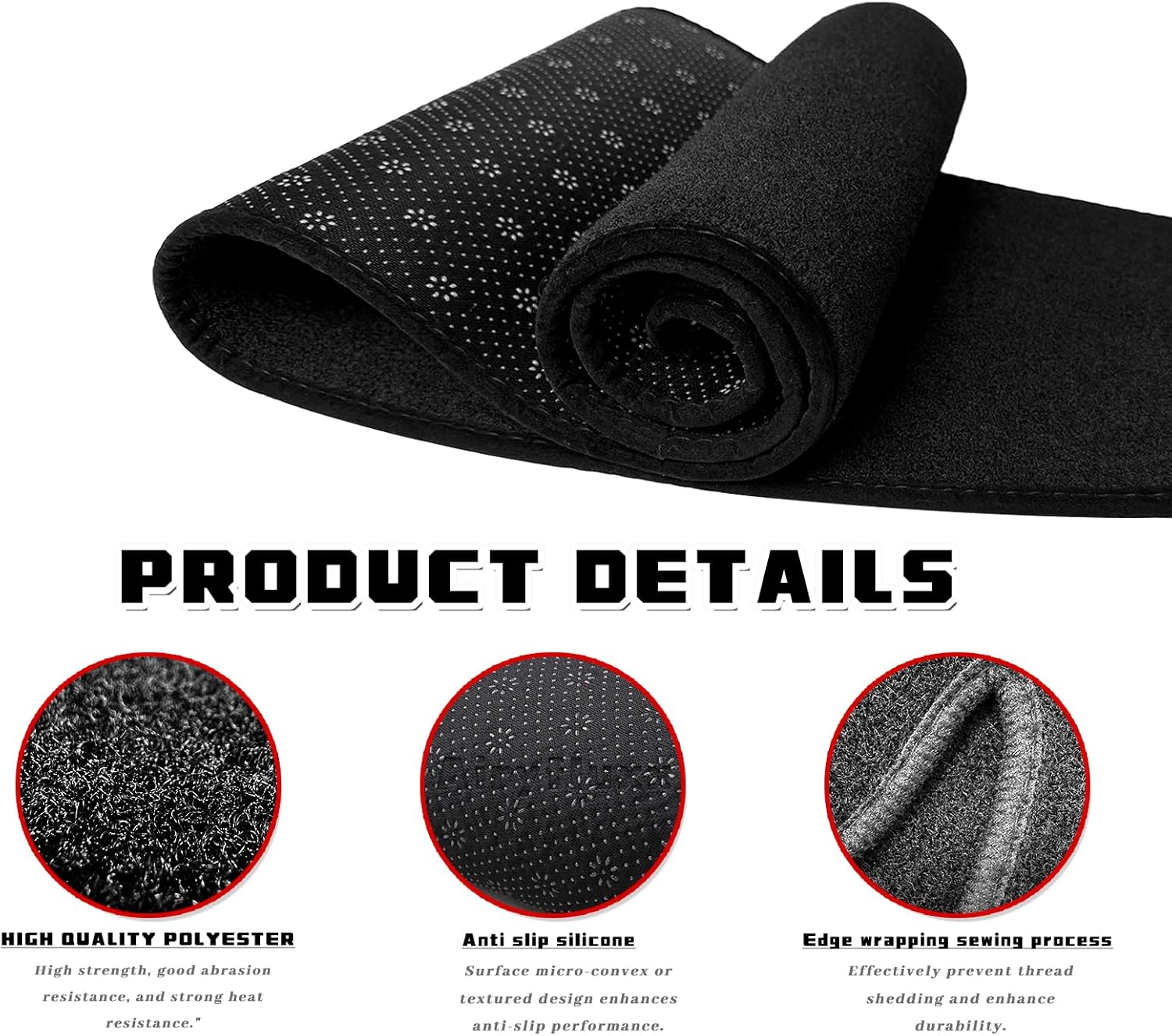 【Stable and Anti-slip Dashboard Cover】 Equipped with anti-slip silicone particles on the back, this dashboard cover stays securely in place during driving, preventing it from shifting or moving around