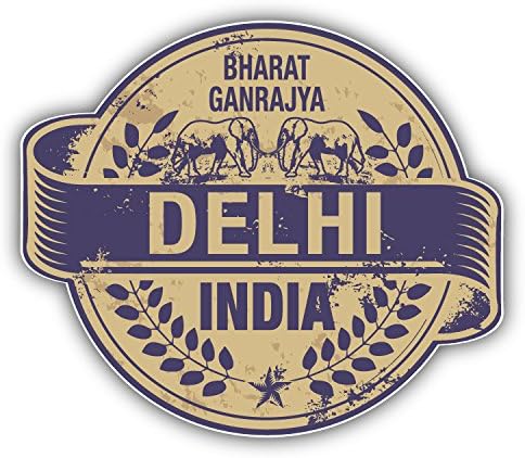 Delhi City India Grunge Travel Stamp Sticker | Car Bumper, Laptop, Water Bottle, Wall, Window Waterproof Vinyl Sticker Decal