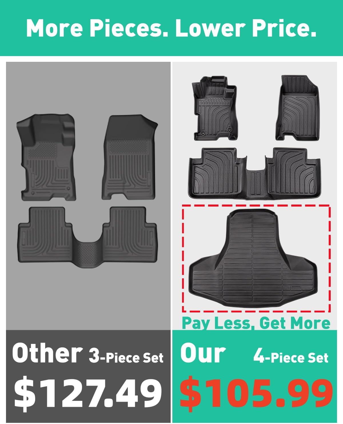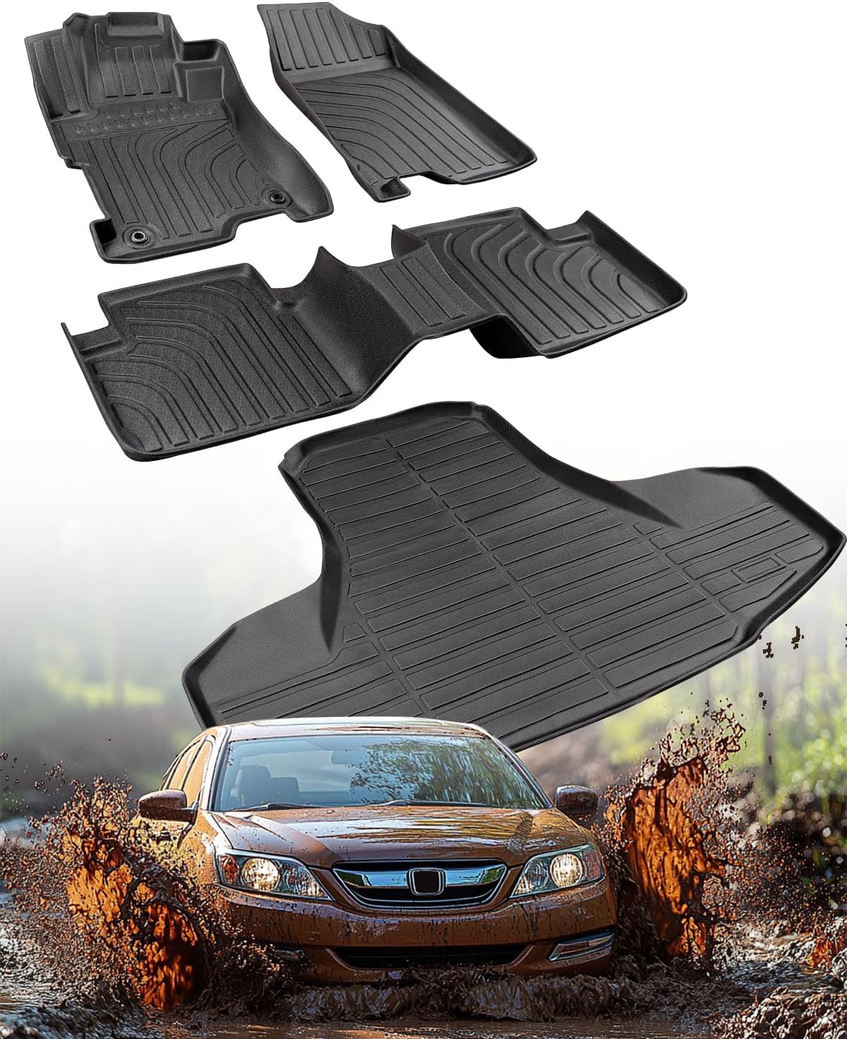 【Custom Fit Design】Precisely engineered for Honda Accord 8th 2008 2009 2010 2011 2012 Sedan (not for Coupe), this 4-piece car mat set includes front, rear, and trunk coverage. Each automotive floor mats & cargo liners follows your vehicle’s contours for a custom fit look, blending perfectly with other interior accessories for Accord