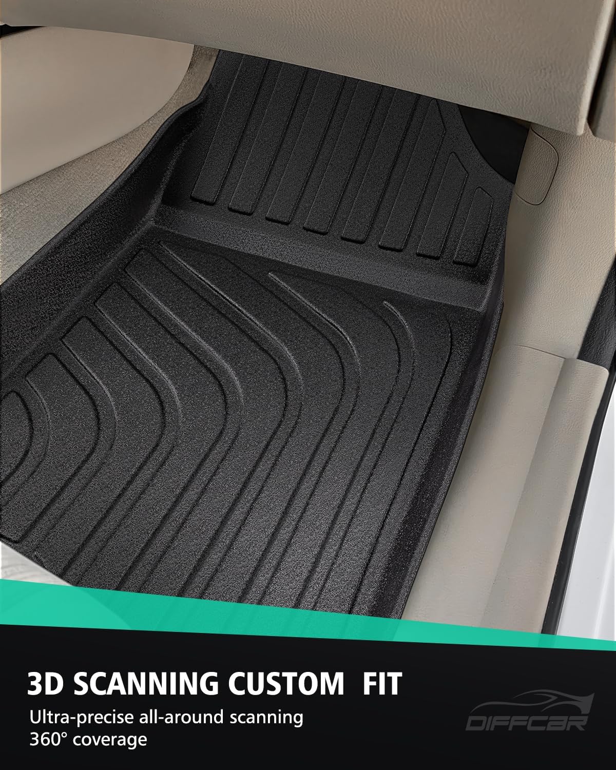 DiffCar® for Honda Accord Floor Mats 2008 2009 2010 2011 2012 (Gas Only), All-Weather TPE Car Accessories for 8th Accord Sedan (Not Fit Coupe), Interior Rubber Car Floor Mat & Trunk Liner, Black Rugs