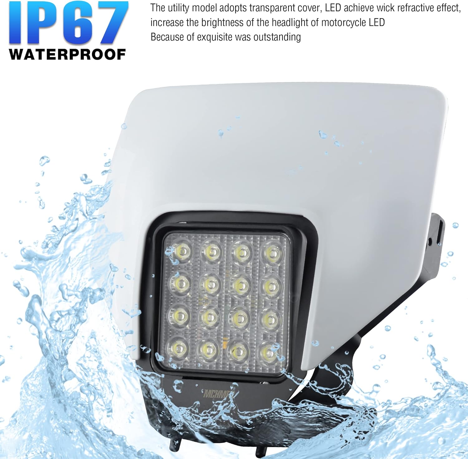 I like the finish of this light. It goes with the Honda mini bikes really well. The light is a nice mix of spot and flood but the lenses are not angled so you have to get the downward angle to properly aim from mount. There’s no hi or low beam. It says there’s a high and low setting but it’s a very slight difference if any. Not sure that would go over well on the streets but for off-road they’re great.