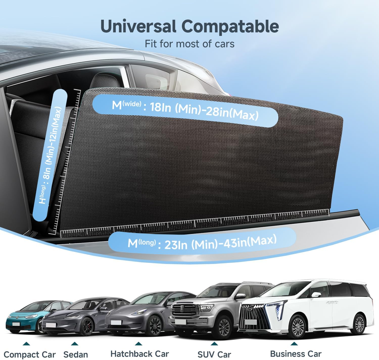 [Universal Compatible] – This car window shade for baby stretchable, form-fitting fabric adapts to almost all car rear window sizes — whether it’s a compact sedan, SUV, Truck, minivan, or crossover. No need to worry about compatibility.
