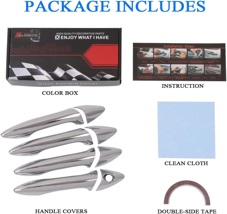 PACKAGES: Comes with 8 pieces door handle covers Without Smart Keyless Entry Access Cut-out.This item is 100% brand new with WZXDAUTO color box.