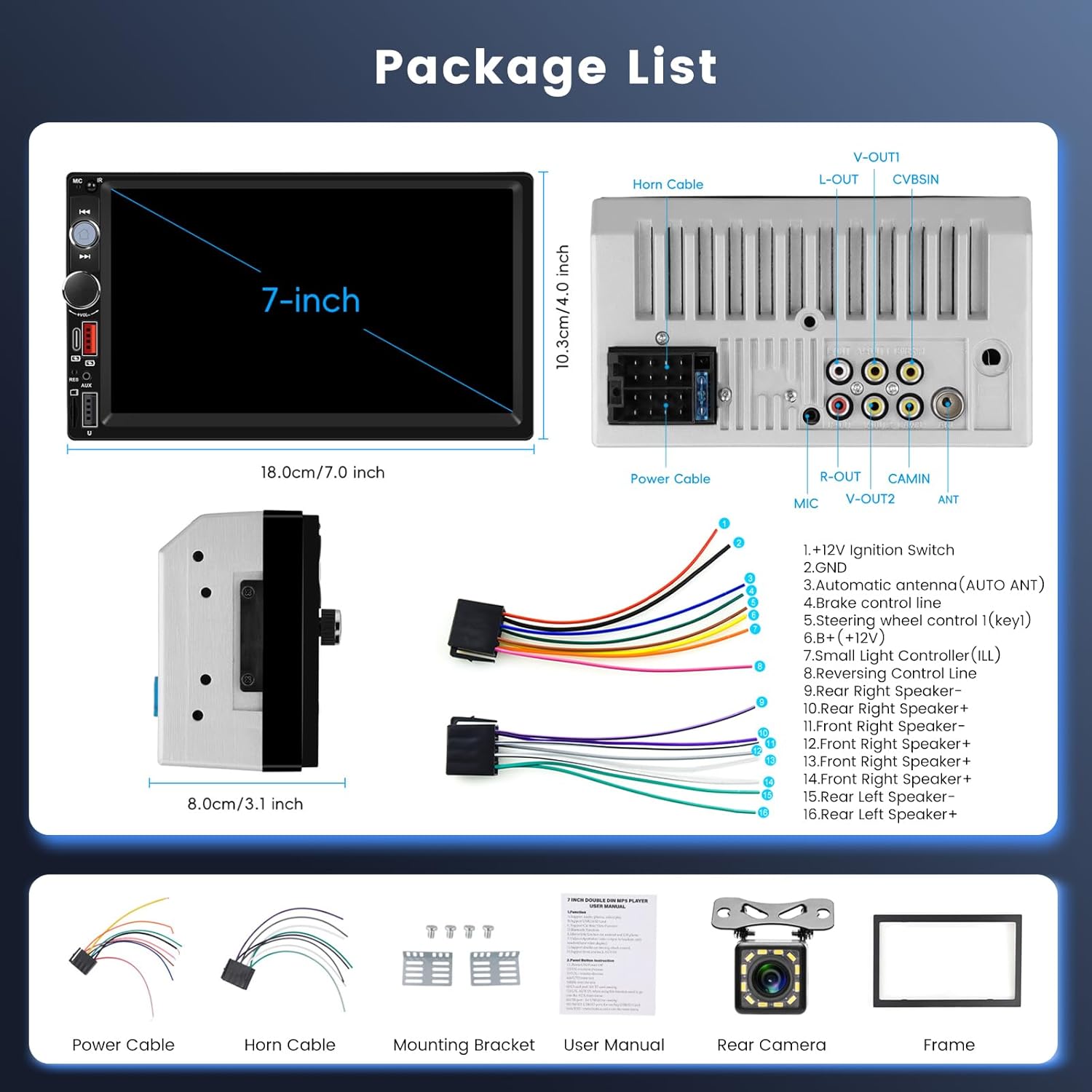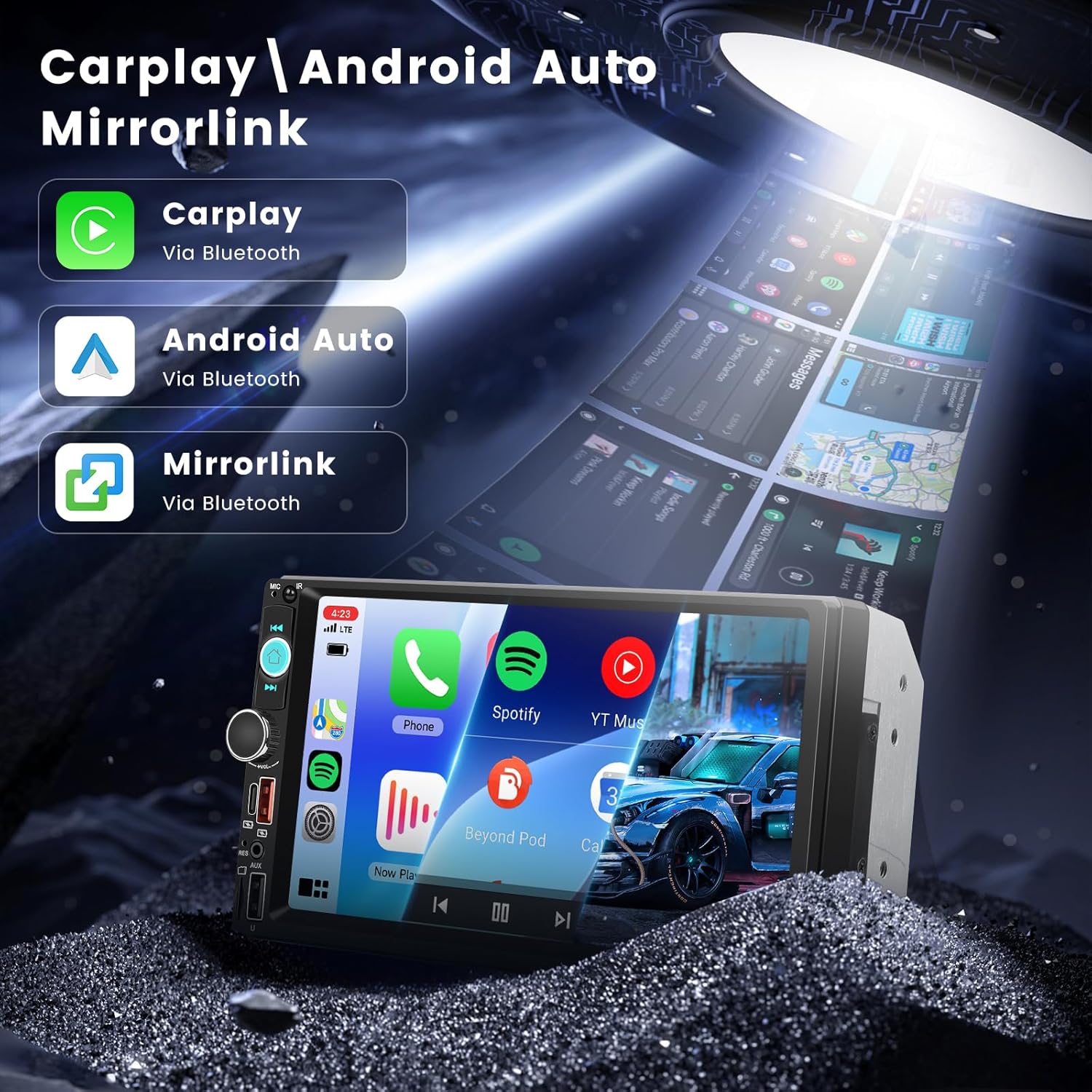 Wireless Connectivity: Double Din car radio stay connected effortlessly with Wireless Carplay, Android Auto and Mirror Link, allowing for seamless integration of your smartphone’s features into your driving experience. Additionally, the Mirror Link functionality providing direct access to your smartphone’s interface on the car’s display. This combination ensures you can enjoy hands-free calling, navigation, and music streaming