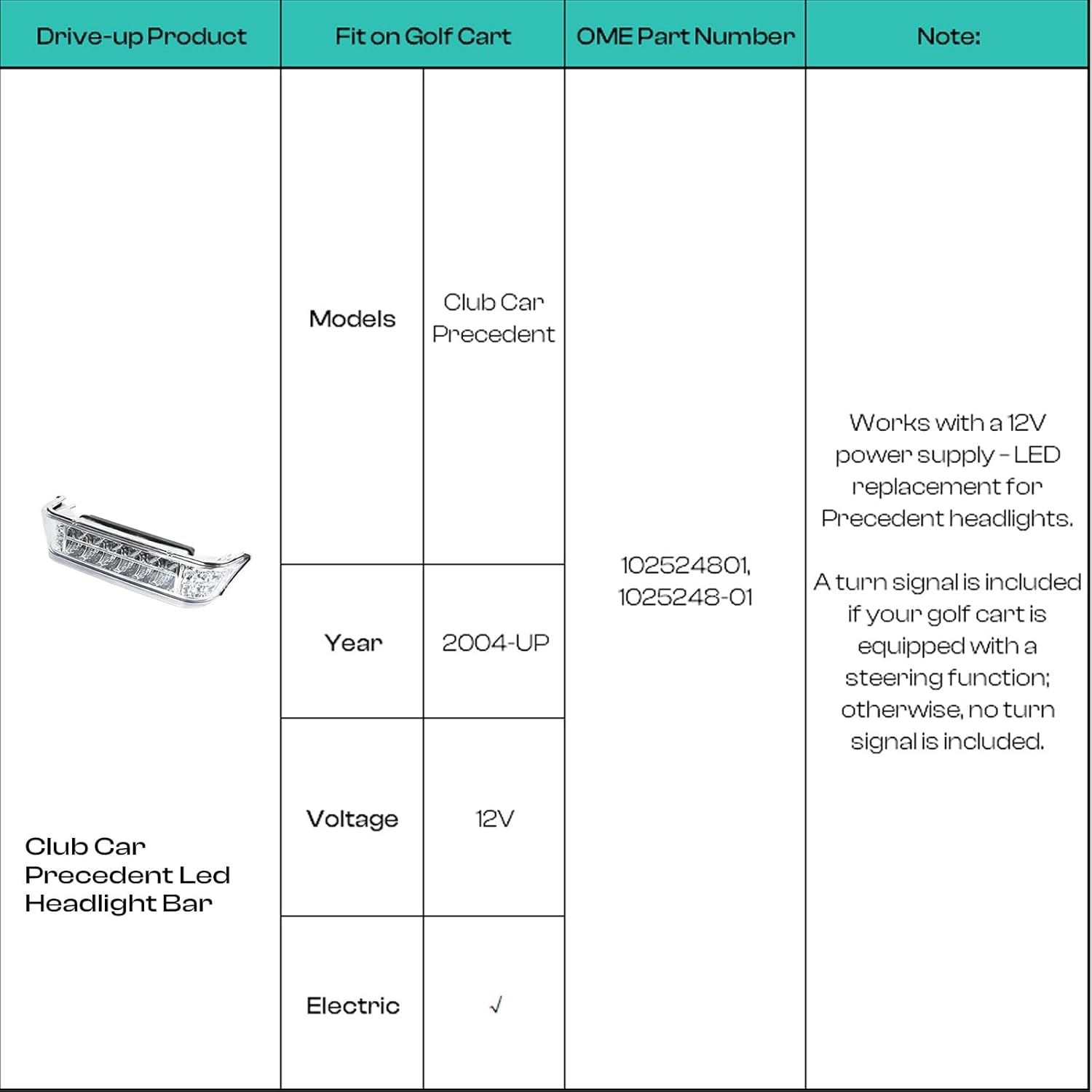 Compatible Club Car Headlight : Golf cart led headlight bar fits for Club Car Precedent with front head light 2004-up gas and electric golf carts. Note: Only replace your borken club car precedent headlight bar or upgrade your golf cart light bar