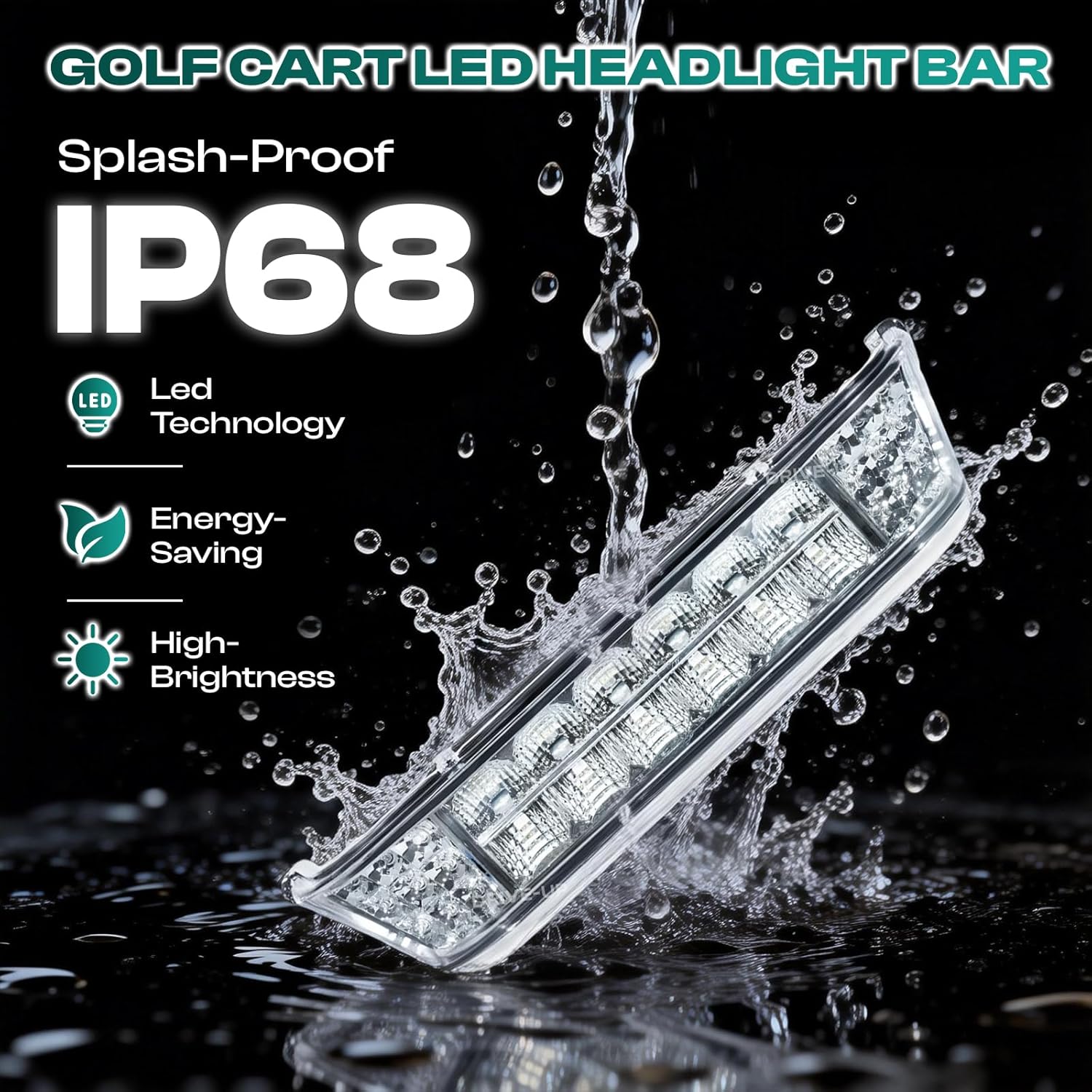 Low Energy Consumption: Drive-up Club Car Precedent LED lights last longer than standard bulbs; LED lights use less energy. This means that club car led headlights require less energy from golf cart’s battery, which extends the service life of the battery, allowing you to drive longer after charging and recharge less often, providing you with a better and safer driving experience, more visiblity