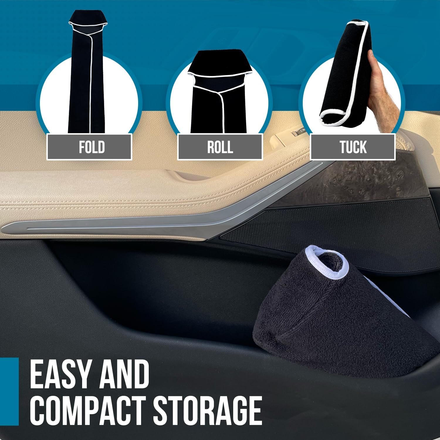 These are pretty nice. I’ve used them a couple of times when I was very wet from the rain or when coming back from the gym because I did not smell good. They’re really great when coming back from the beach and you need to drive home.They are pretty compact and they roll up nicely and can fit under your seats or in any compartment you have.They have a elastic clip on the back that way they don’t move too much.